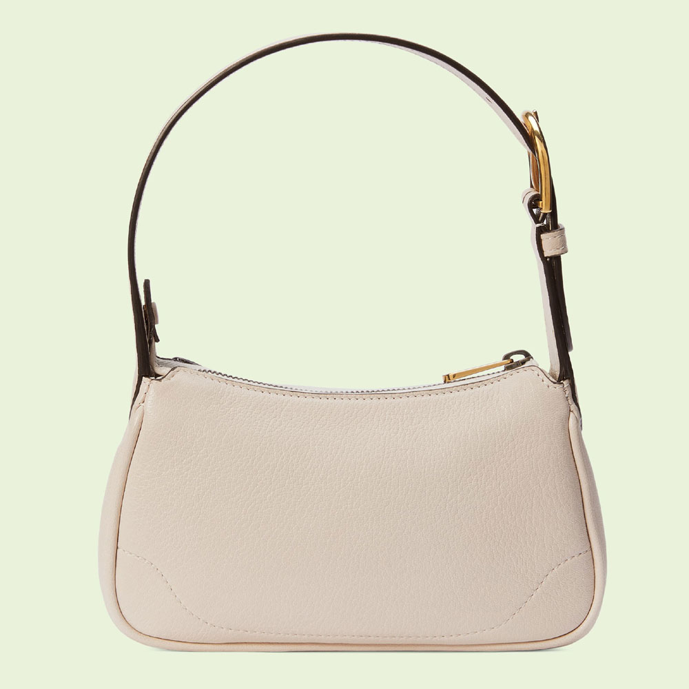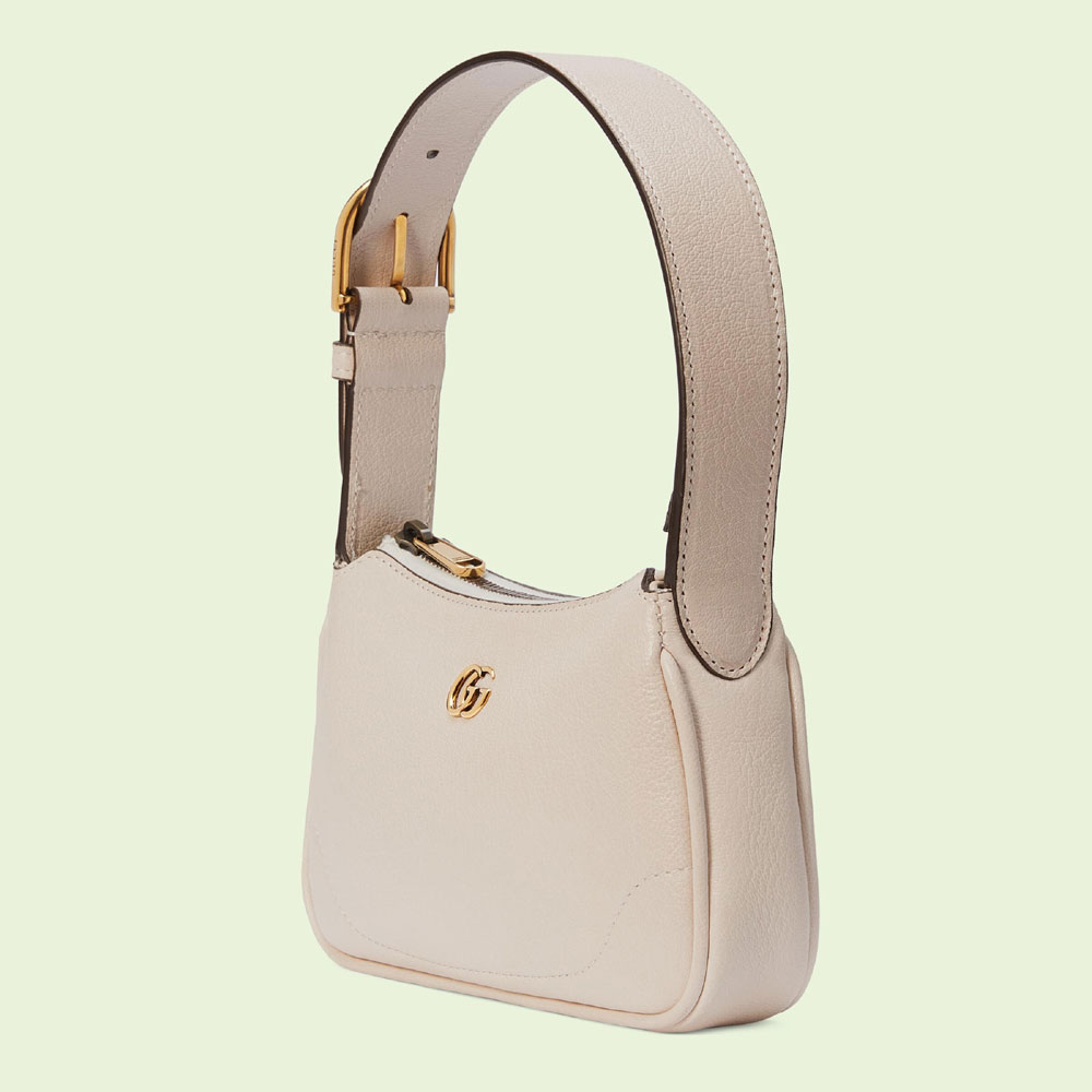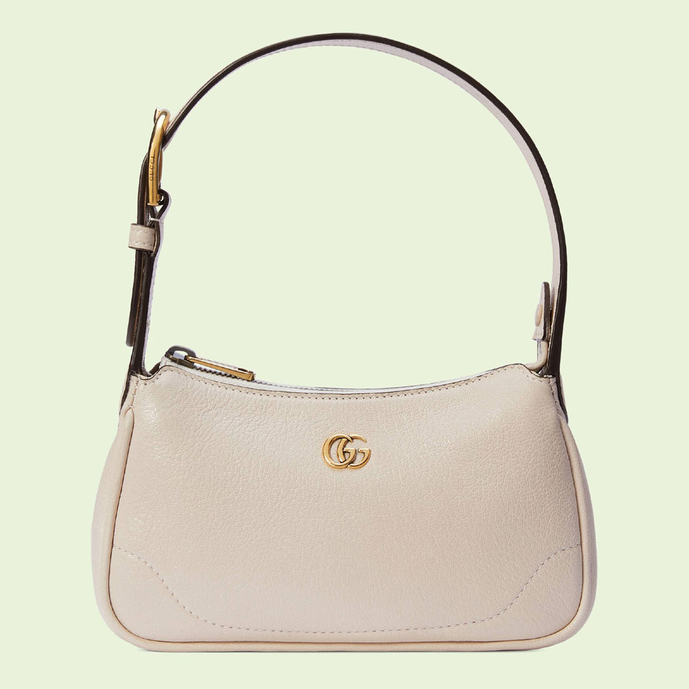 A nod to styles popular during the late 1990s and early 2000s. the Aphrodite line welcomes a new shape with this small shoulder bag. which pairs the essential design with pop colors and the unmistakable Double G hardware. for a sleek yet unexpected look. Here. it's presented in a soft white leather with a gold-toned zip closure.