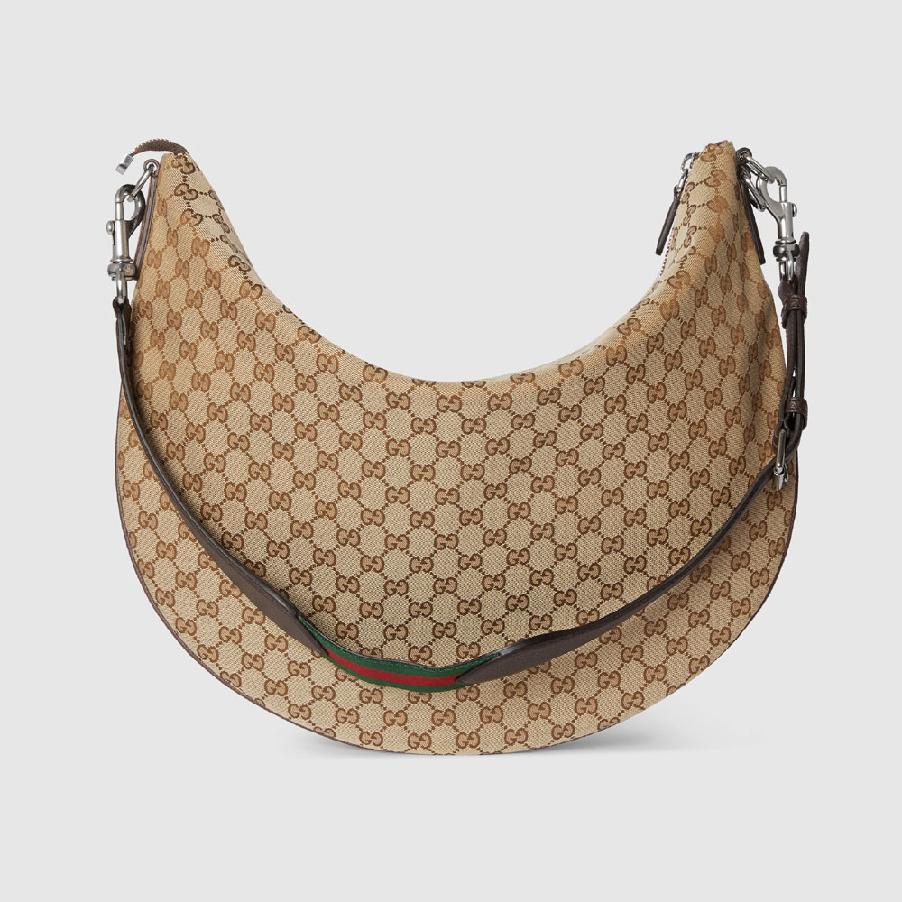 Part of the Cruise 2025 collection, the Gucci B bag draws its name from an archive design, re-envisioned here with a relaxed silhouette that drapes across the body. Appearing in a beige and dark brown Original GG canvas, the style has an external D-ring to attach smaller accessories and complete the look. Size:50 x 39 x 3CM