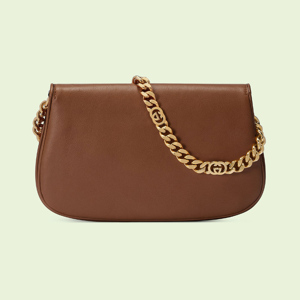 Coming from the House's archives. a round shaped version of the Interlocking G logo is reintroduced for Gucci Love Parade. Crafted from cuir leather. this shoulder bag is completed by a delicate chain strap. infusing this accessory with a refined feel. Size:28 x 16 x 4CM