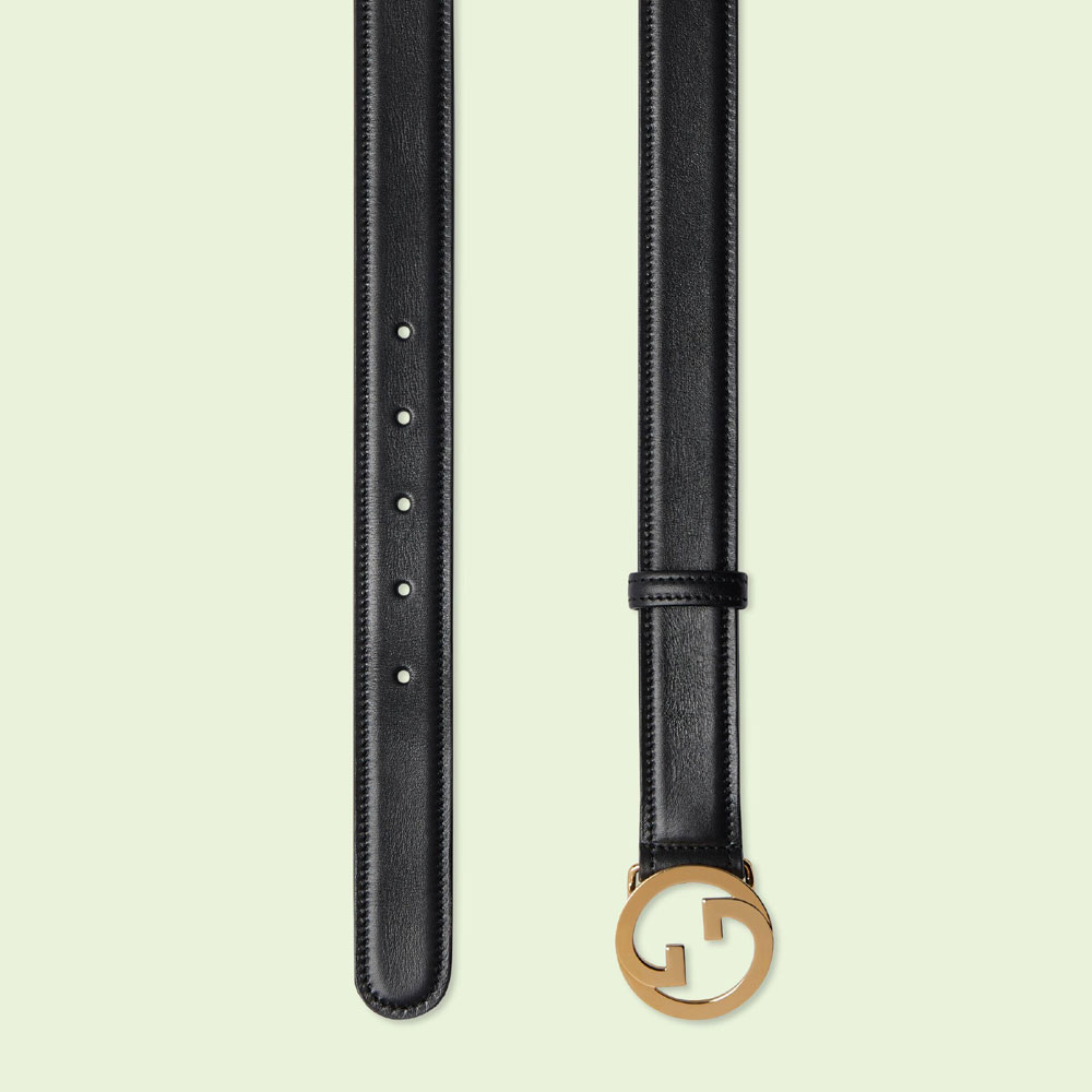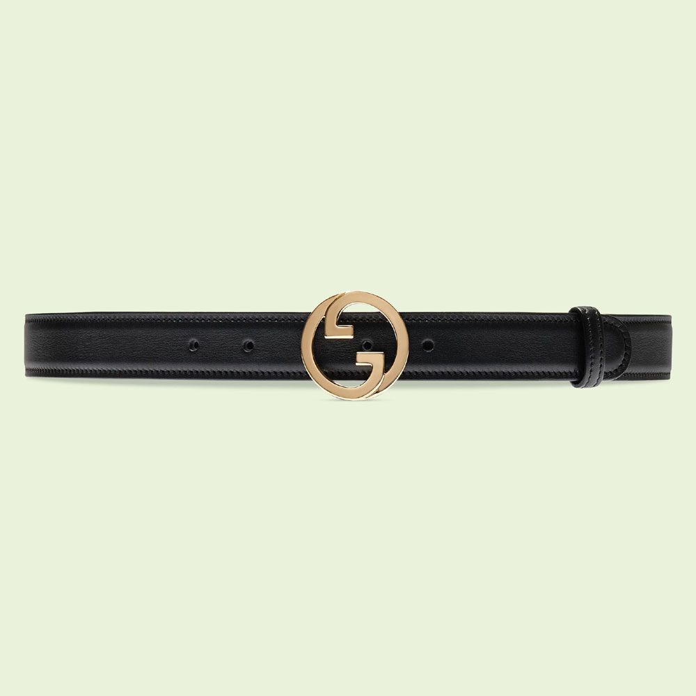 The Gucci Love Parade unfolded along the iconic Hollywood Boulevard. Self-expression defined the collection. a reflection of Los Angeles itself and its embrace of the idea that there are no rules when it comes to dressing up. Playing with this theme. the accessories and pieces of ready-to-wear continue to reimagine and reintroduce heritage details. Here. this black leather belt is distinguished by an archival iteration of the House's monogram hardware.