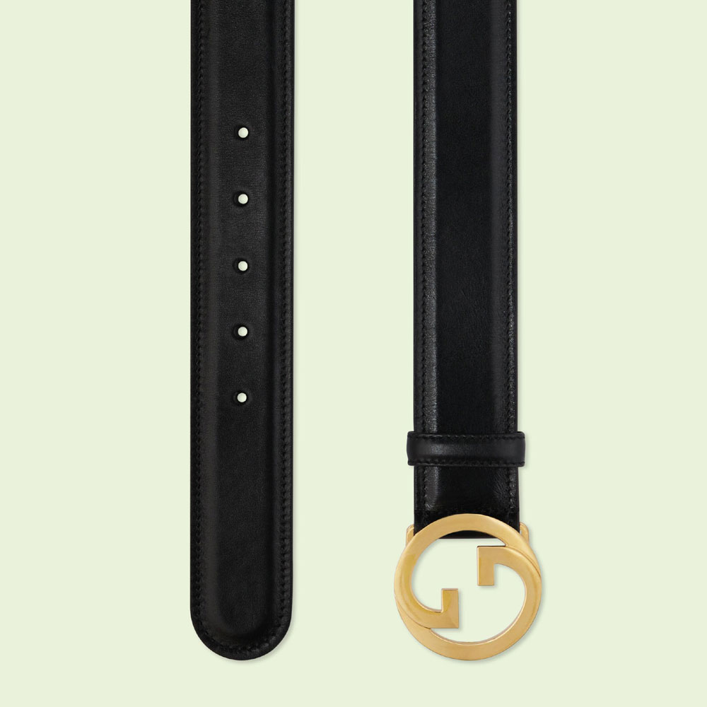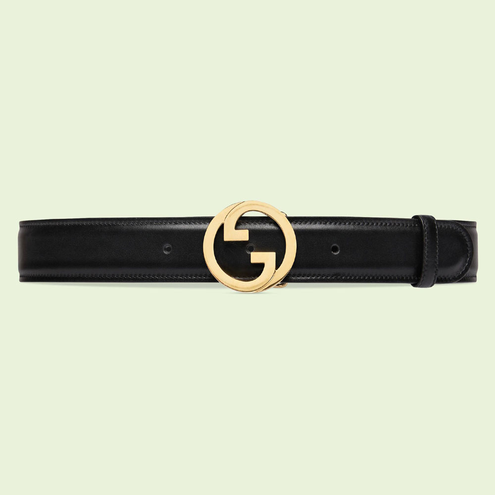 The Gucci Love Parade unfolded along the iconic Hollywood Boulevard. Self-expression defined the collection. a reflection of Los Angeles itself and its embrace of the idea that there are no rules when it comes to dressing up. Playing with this theme. the accessories and pieces of ready-to-wear continue to reimagine and reintroduce heritage details. Here. this black leather belt is distinguished by an archival iteration of the House's monogram hardware.