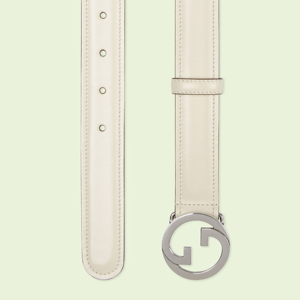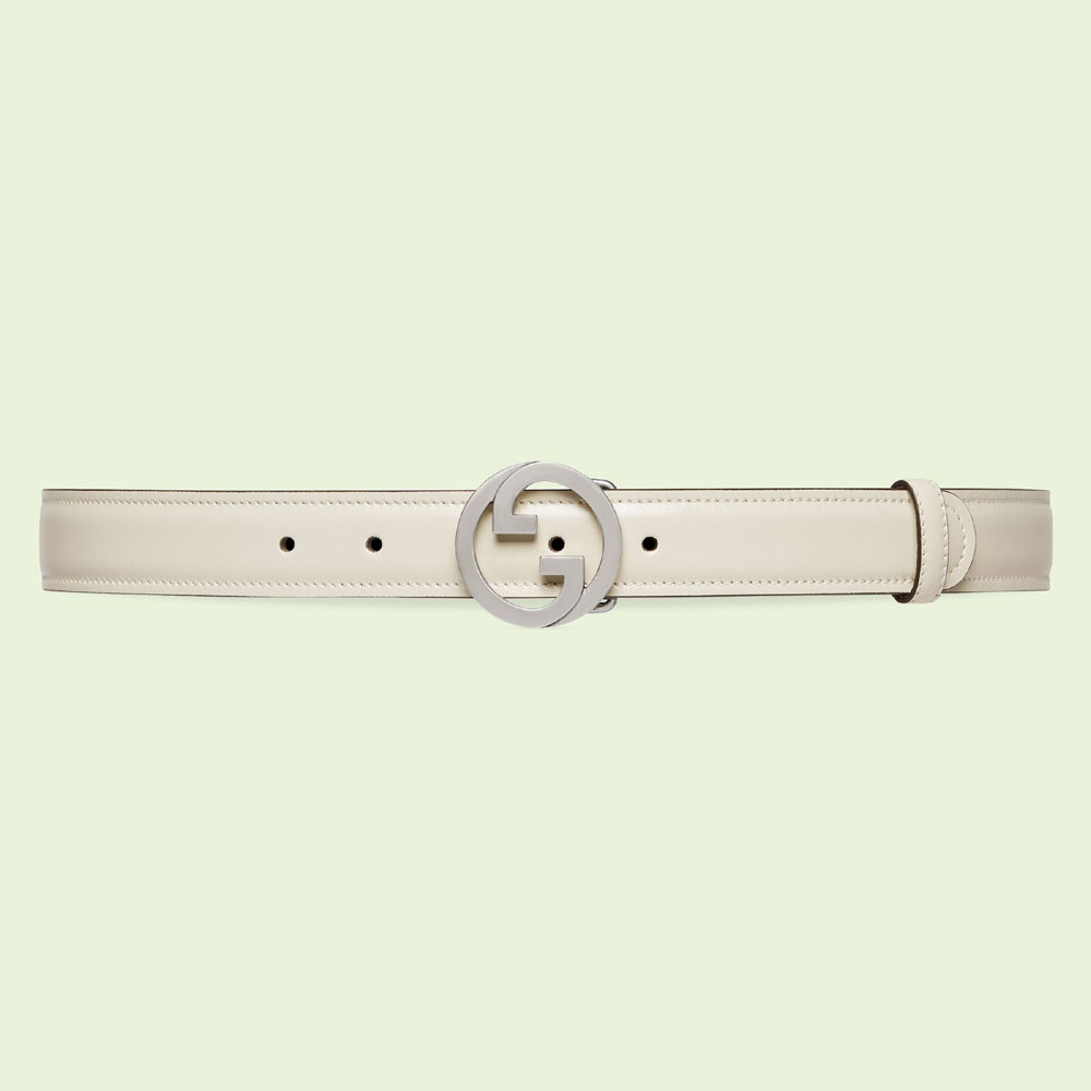 Accessories and pieces of ready-to-wear continue to reimagine and reintroduce heritage details. Here. this white leather belt is distinguished by an archival iteration of the House's monogram hardware.