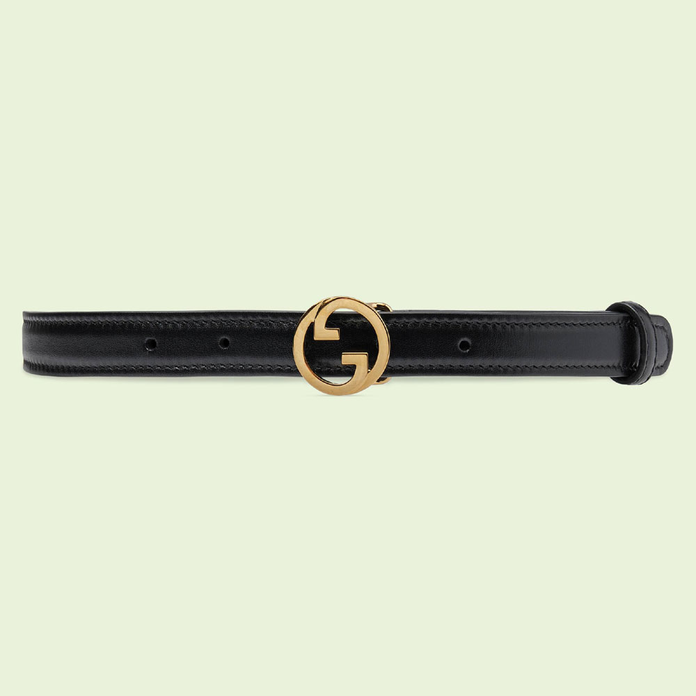 Self-expression defines Gucci collections. embracing the idea that there are no rules when it comes to dressing up. Playing with this theme. the accessories and pieces of ready-to-wear continue to reimagine and reintroduce heritage details. Here. this thin black belt is distinguished by an archival iteration of the House's monogram hardware.