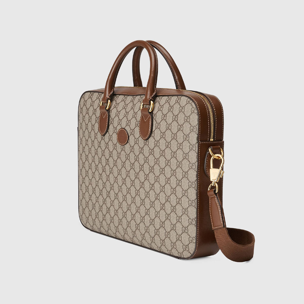 The Interlocking G has remained one of the most symbolic codes of the House since its introduction. The distinguishing emblem appears as a leather detail atop this business case. Completing the design's logo feel. the style is crafted from monogram canvas.
