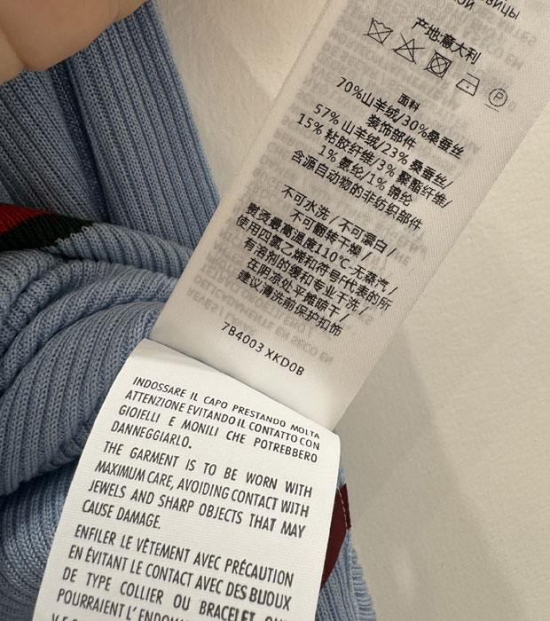 Care Guide : Instructions for cleaning, maintaining, and storing your Gucci clothes.