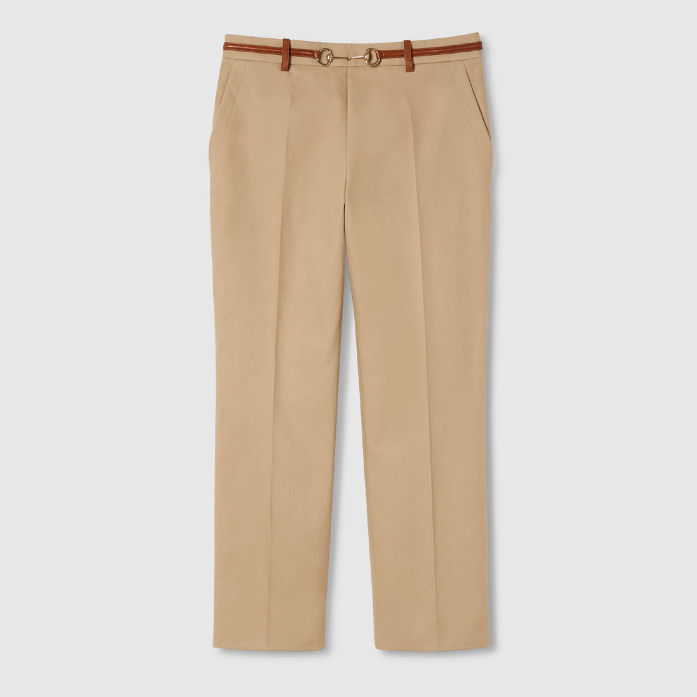 These pants are a perfect blend of elegance and comfort! The soft beige cotton feels premium, and the iconic Horsebit detail adds a touch of sophistication. Ideal for both casual and semi-formal looks, they showcase timeless style with a modern twist.