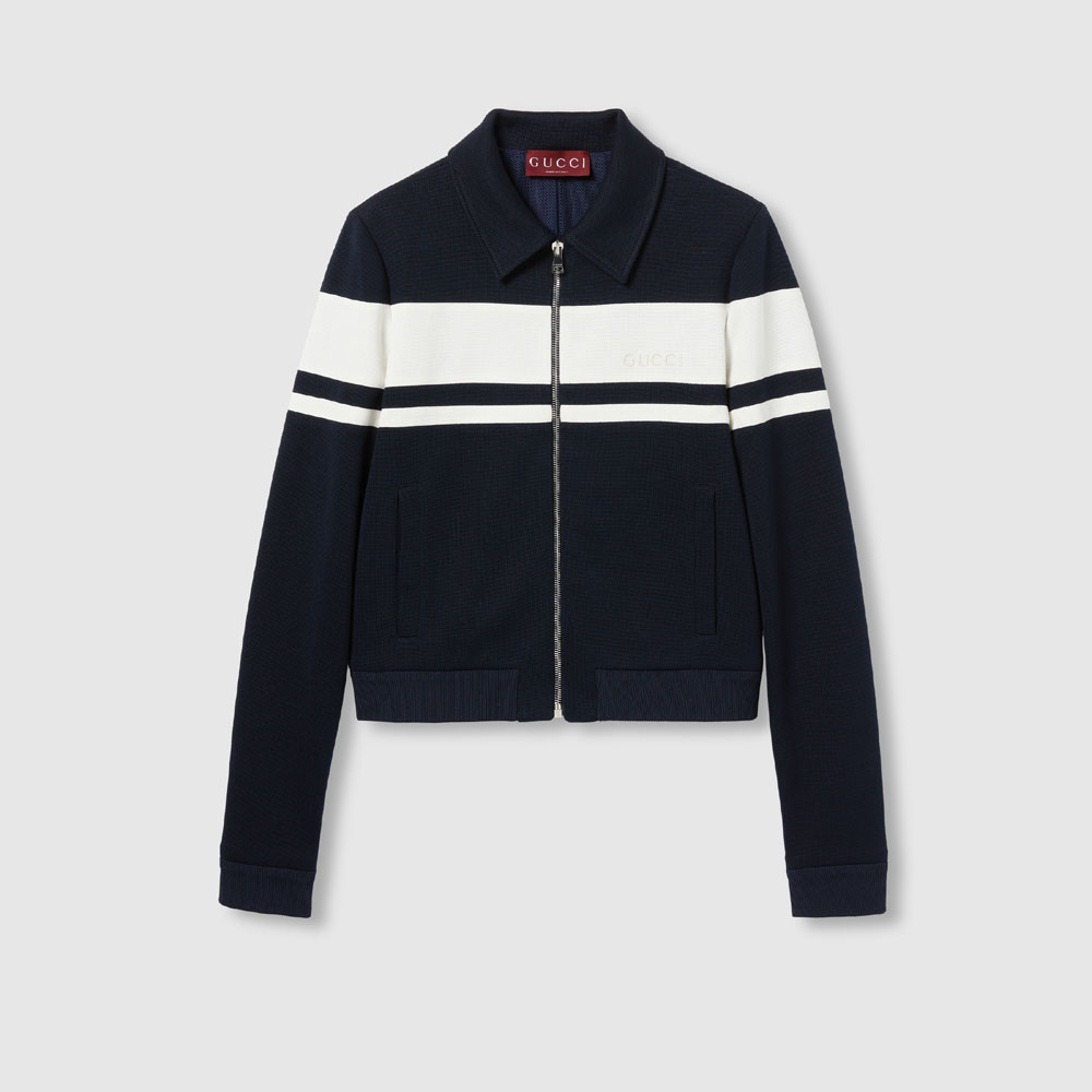 Styling the Gucci Cotton Jersey Jacket with Embroidery in Dark Blue White