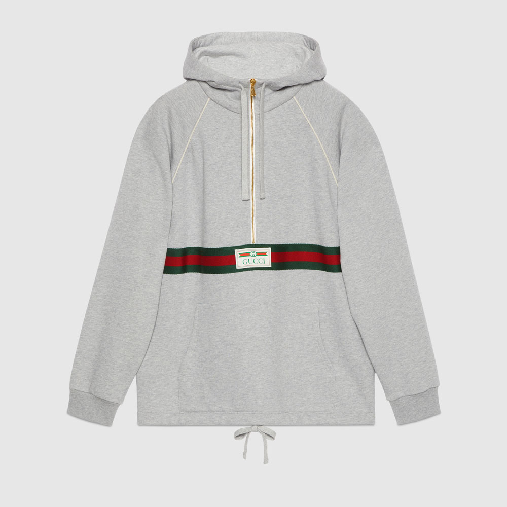 Gucci Cotton Jersey Sweatshirt With Web In Grey 645320 XJF63 1148