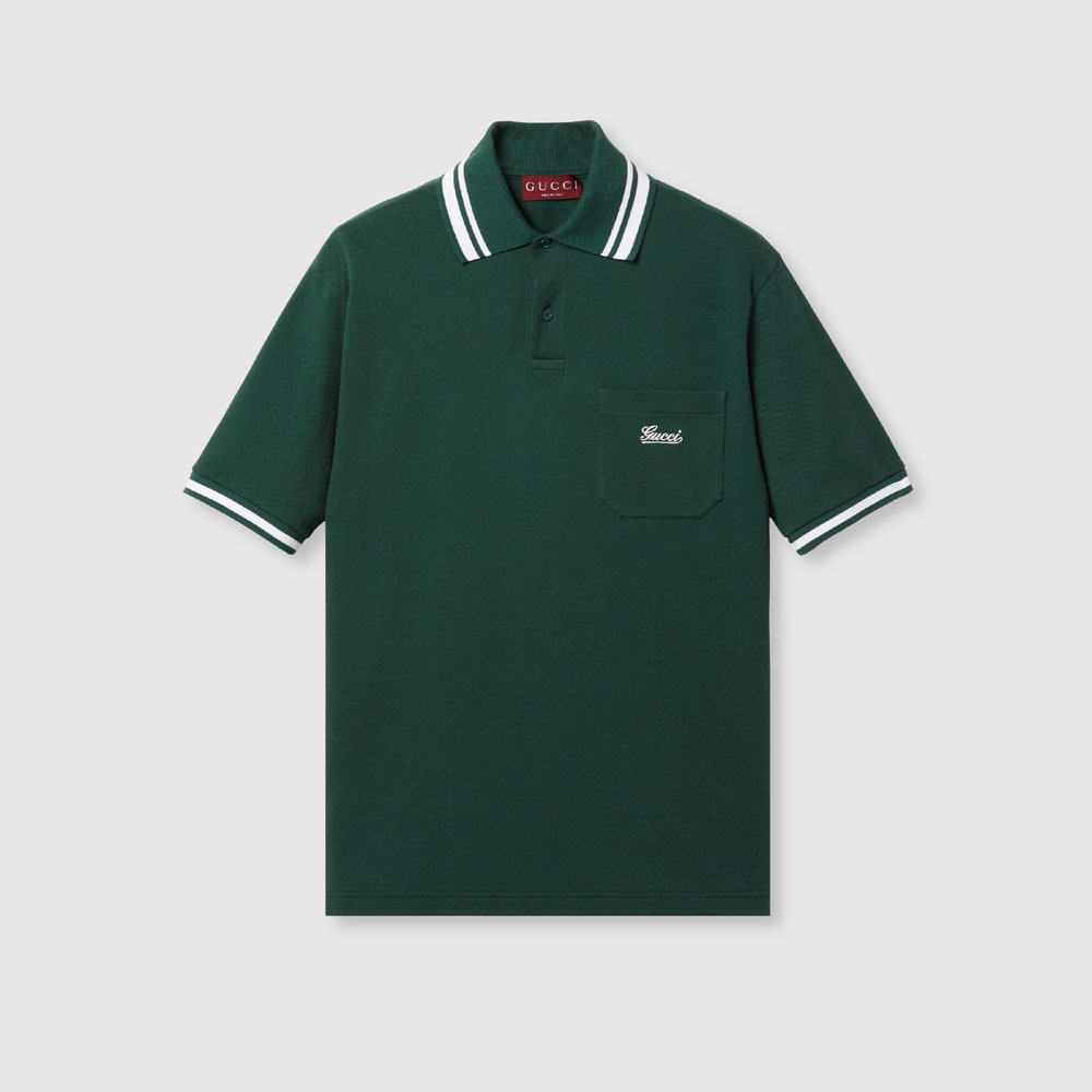 Gucci Cotton piquet polo shirt in dark green 784422 XJGP6 3026