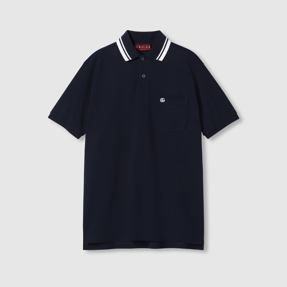Gucci Cotton polo shirt with embroidery in navy 795174 XJG16 4003