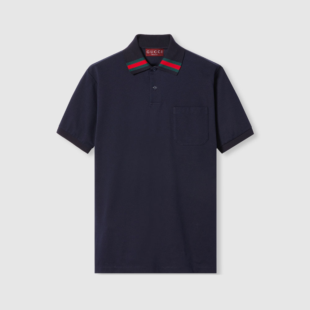 Gucci Cotton polo shirt with Web in navy 795174 XJGRO 4215