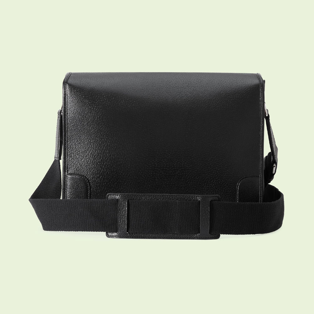 Gucci's latest travel selection takes its roots from 1900s; the heyday of luxury luggage. With a more formal silhouette and archival design details such as the Interlocking G. the offering has a distinctly refined feel. This crossbody messenger bag appears in black leather with a flap closure and a canvas shoulder strap.