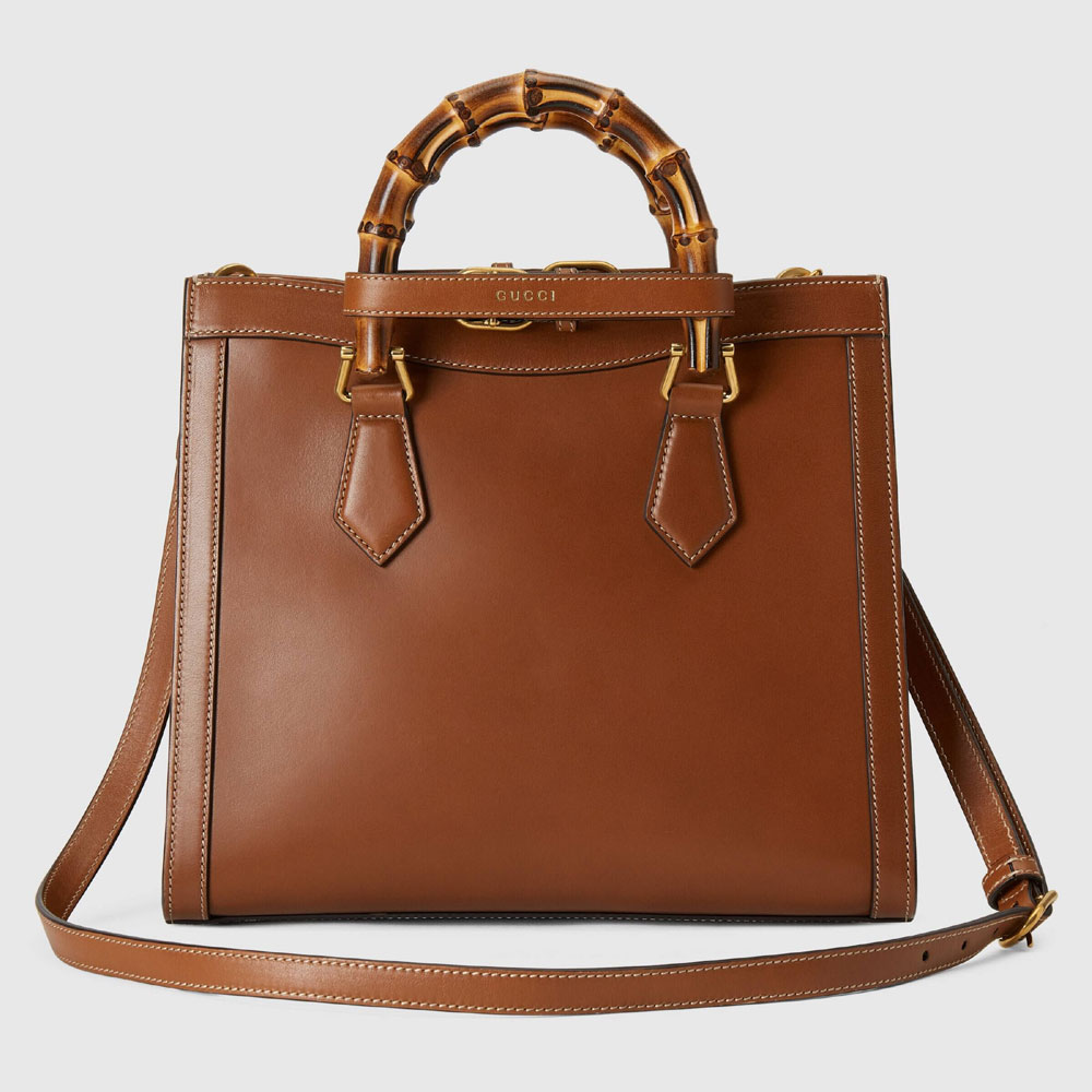 Reflective of its era, a bamboo handle tote was first presented by the House in 1991. Speaking to the narrative of evolution and reinvention that runs through Guccis designs, the Gucci Diana is reimagined by Alessandro Michele with removable leather belts a nod to the functional bands that once came with the original bag to maintain the shape of the handle