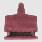 Beige/ebony Blooms print GG Supreme canvas, a material with low environmental impact, with pink suede trim Tiger head spur Hand-painted edges Hand-stitched details Sliding chain strap can be worn as a shoulder strap with 15.75" drop or can be worn as a top handle with 9" drop Pin closure with side release Mini 7.75"W x 6"H x 2"D Pocket under the flap Made in Italy Antique silver toned hardware