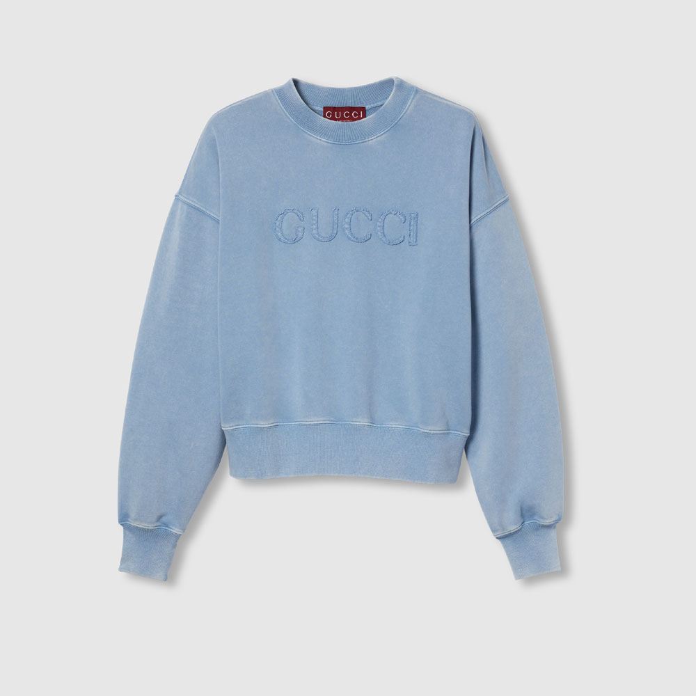 Gucci Embroidered cotton jersey sweatshirt in light blue 789582 XJGUL 4799