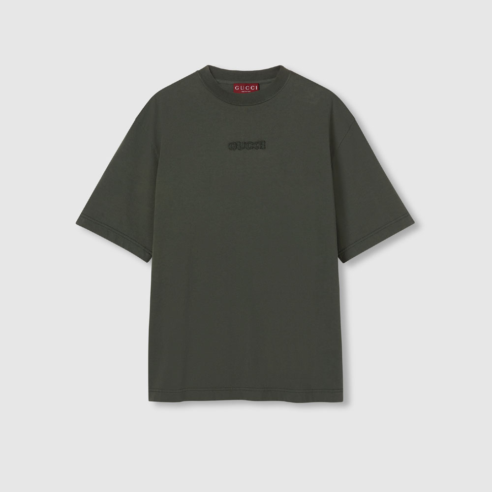 Absolutely impressed with the Replica Gucci Embroidered cotton jersey T-shirt! The forest green color is stunning, and the embroidered detailing adds a touch of luxury. The premium cotton fabric feels soft and comfortable, perfect for everyday wear. Highly recommend!