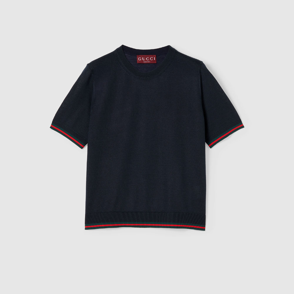 Embrace contrast by matching its vibrant trim with Gucci floral clothing - try a midi skirt in botanical prints for a bold yet balanced look. In cooler weather, drape a cream cashmere coat over your shoulders. Finish with delicate gold jewelry to highlight the sweater's refined silk-cashmere texture.