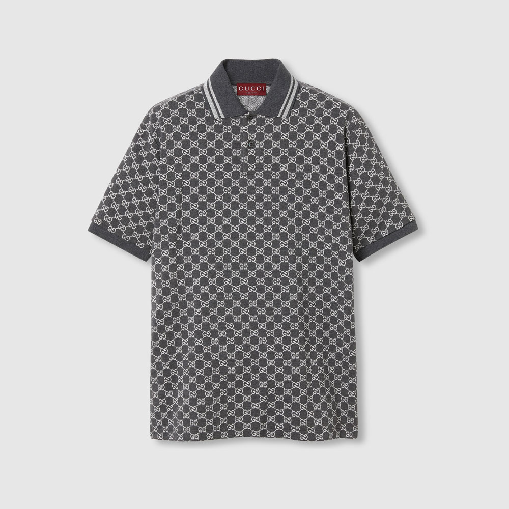 Elevate Your Look: The Gucci GG cotton lame jacquard polo in dark grey is a versatile men's shirt perfect for smart-casual ensembles.