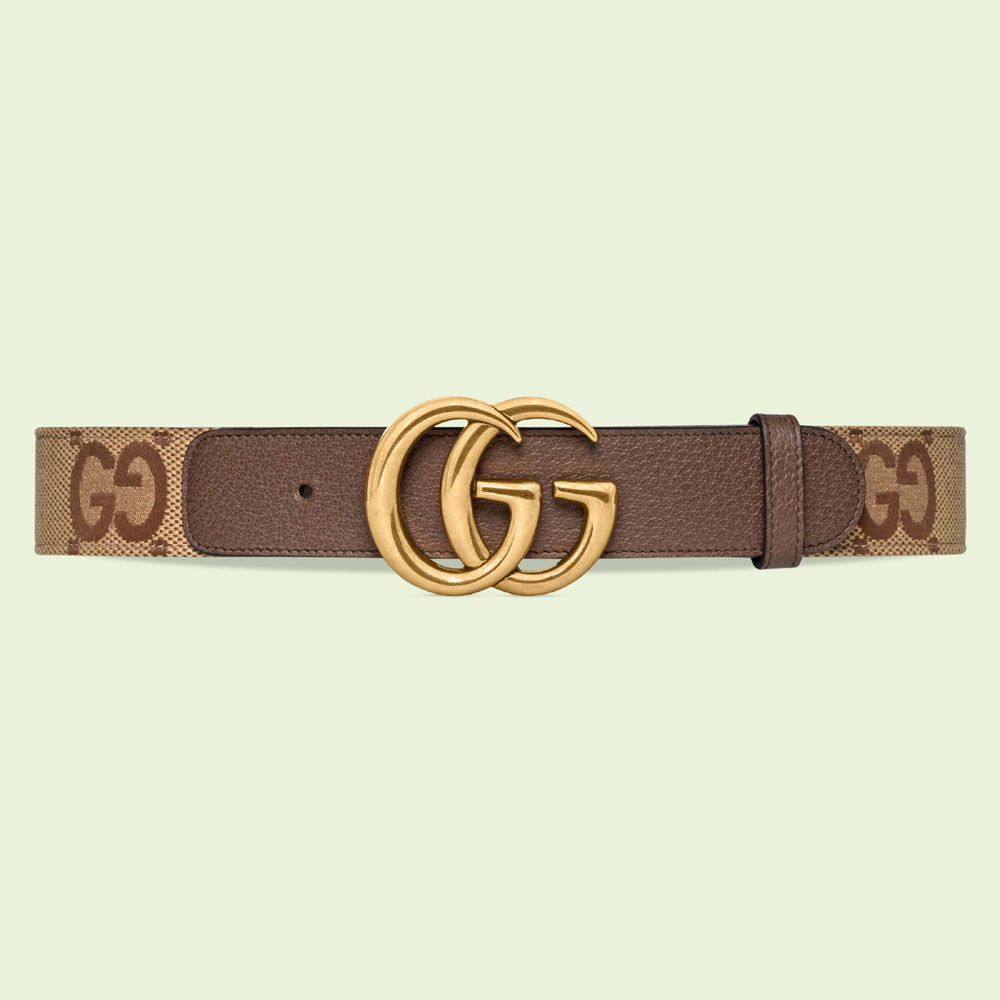 Reminiscent of the GG Marmont handbag. this wide belt is characterized by the Double G. Inspired by a buckle from the '70s archives. the gold-toned hardware is imagined each season in new ways. playing with the concept of timelessness. The jumbo GG. a new. maximalist version of the historic monogram. animates a selection of ready-to-wear and accessories for the Aria collection.