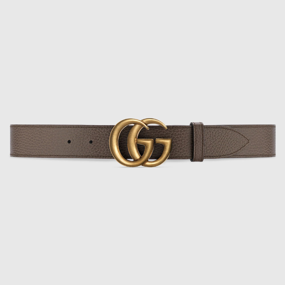 A reversible leather belt in textured leather. finished with the Double G buckle. The hardware was inspired by an archival design from the '70s-a hallmark era of the House.