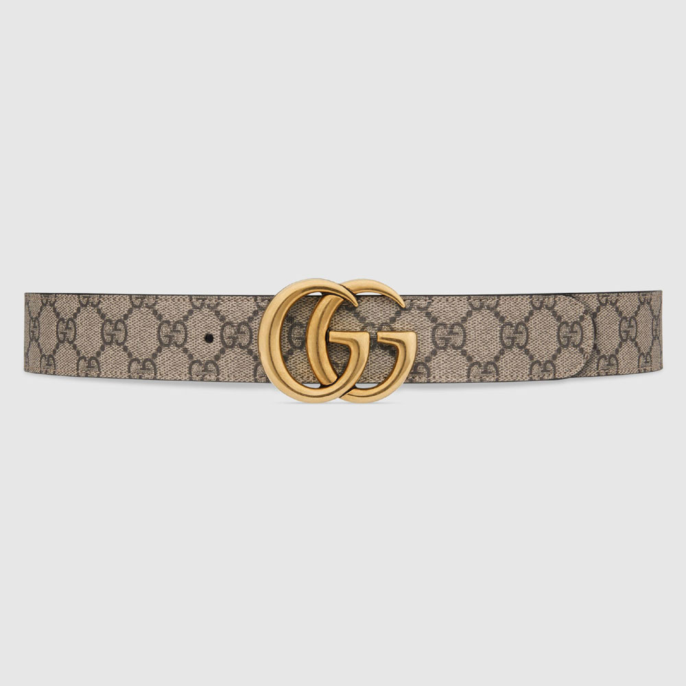 The GG Marmont's recognizable design blends the 70s GG hardware with contemporary styles. This GG Supreme canvas belt reverses to brown leather offering an alternative look.
