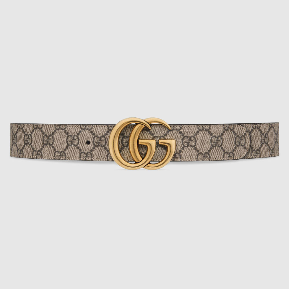 The GG Marmont's recognizable design blends the 70s GG hardware with contemporary styles. This GG Supreme canvas belt reverses to black leather offering an alternative look.