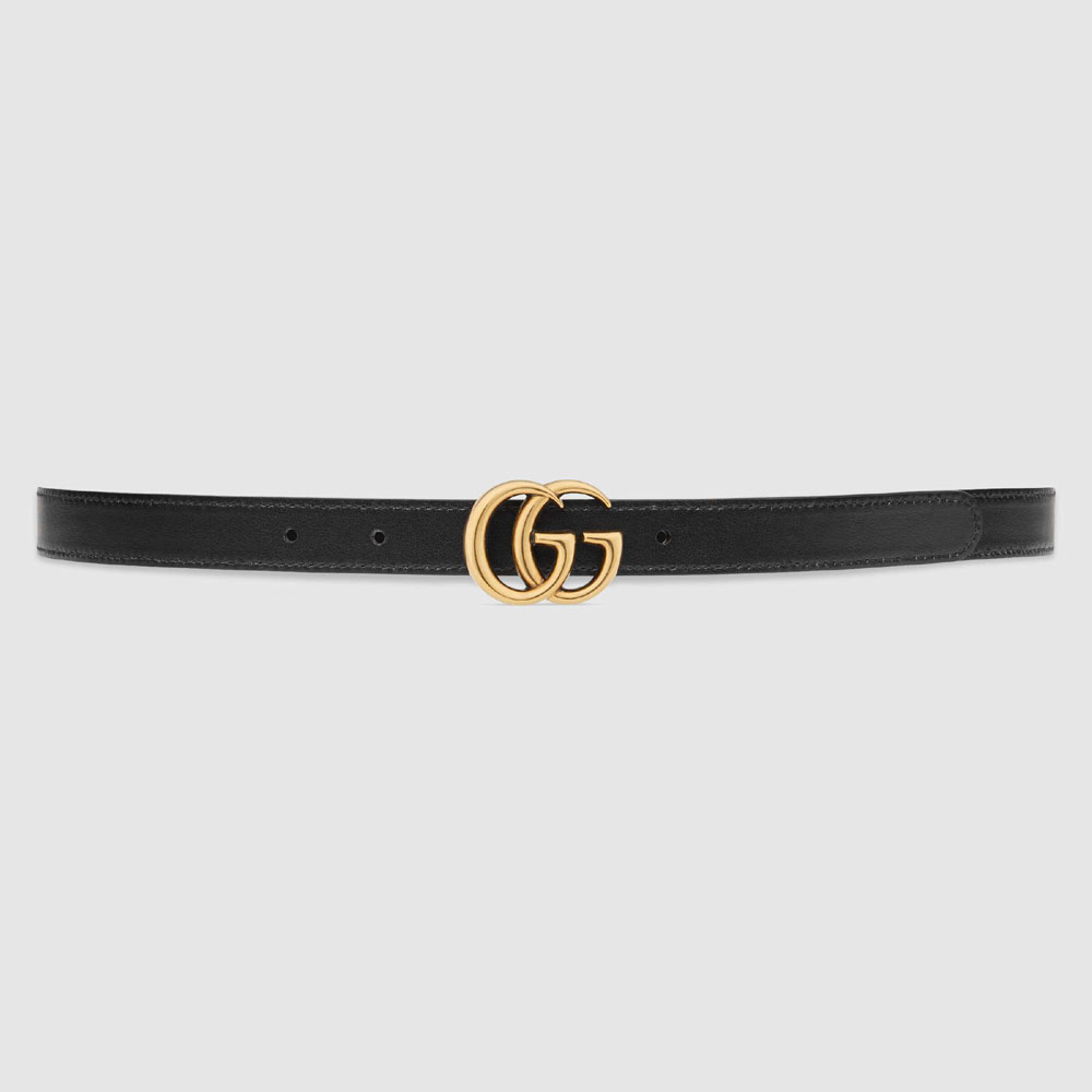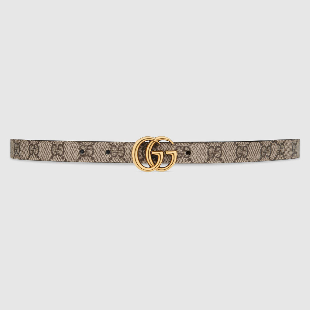 The GG Marmont's recognizable design blends the 70s GG hardware with contemporary styles. This GG Supreme canvas skinny belt reverses to black leather offering an alternative look.