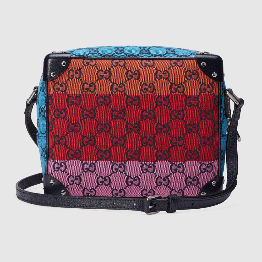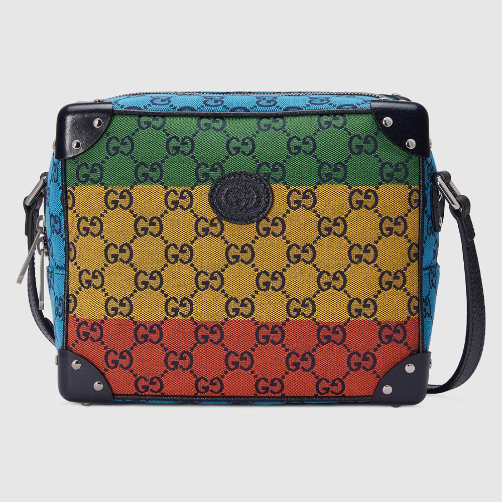 various pieces throughout the collection provide a new lens through which to view the emblematic GG rhombi motif. This structured shoulder bag is part of the GG Multicolor collection.