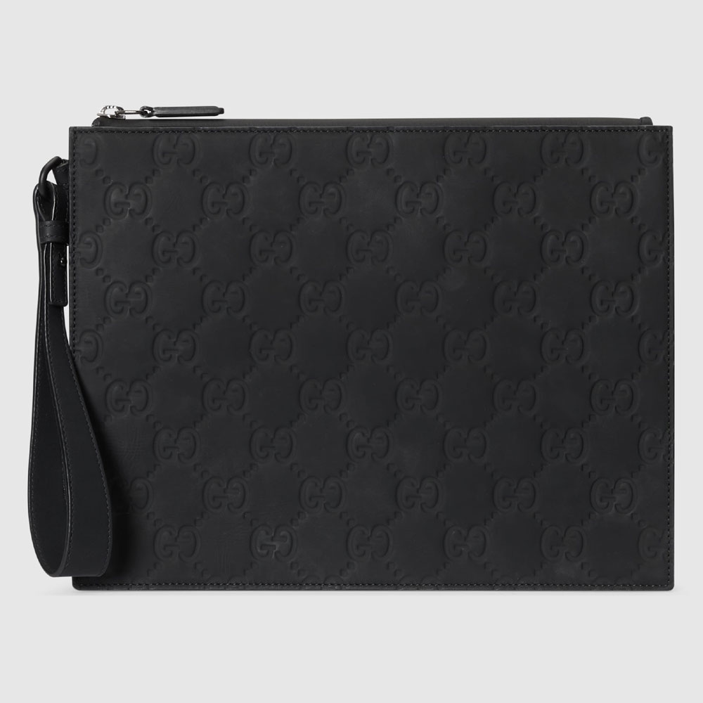 Gucci GG Rubber-effect Pouch In Black Leather 771319 AAC0G 1000
