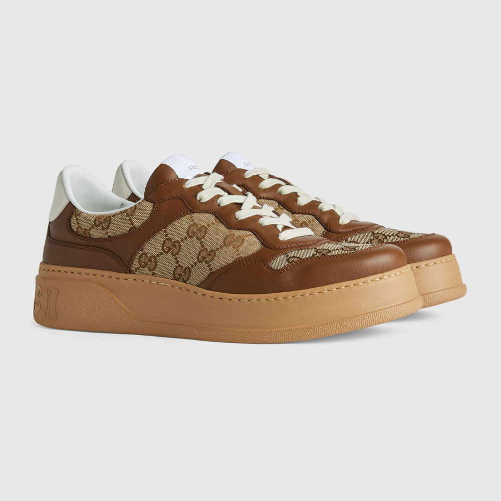 With a chunky silhouette. this sneaker plays with shapes. colors and materials to create a retro feel. With a defined rubber sole. the shoe is crafted from beige and ebony Original GG canvas with a tonal leather trim.