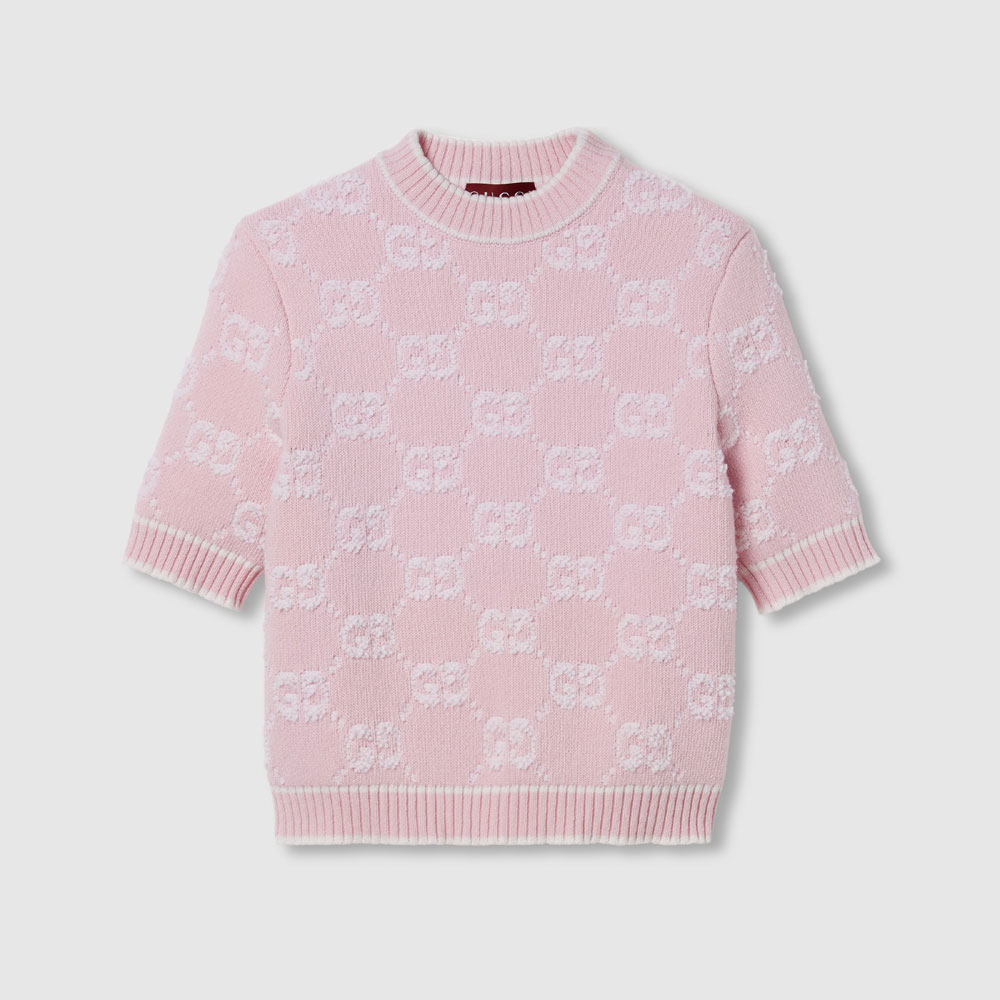 This soft wool jacquard top, featuring the iconic GG pattern, pairs effortlessly with tailored high-waisted trousers for a polished look.