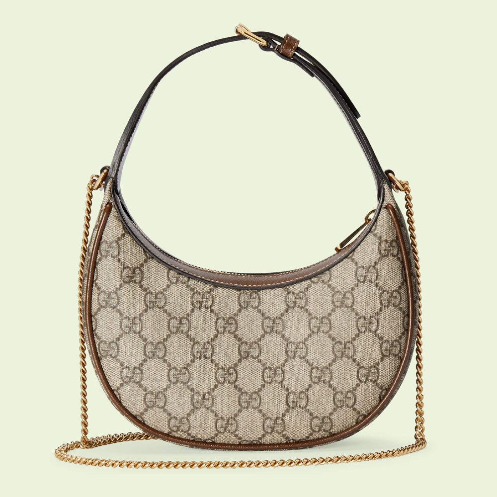 With a crescent silhouette in GG Supreme canvas. this mini bag has a defined retro feel. Each collection is a journey through different decades and eras. combining vintage elements with archival codes or contemporary details to create new designs that exist outside of space and time. The mini accessory reflects this fascination with the past. Size:22 x 12 x 5CM