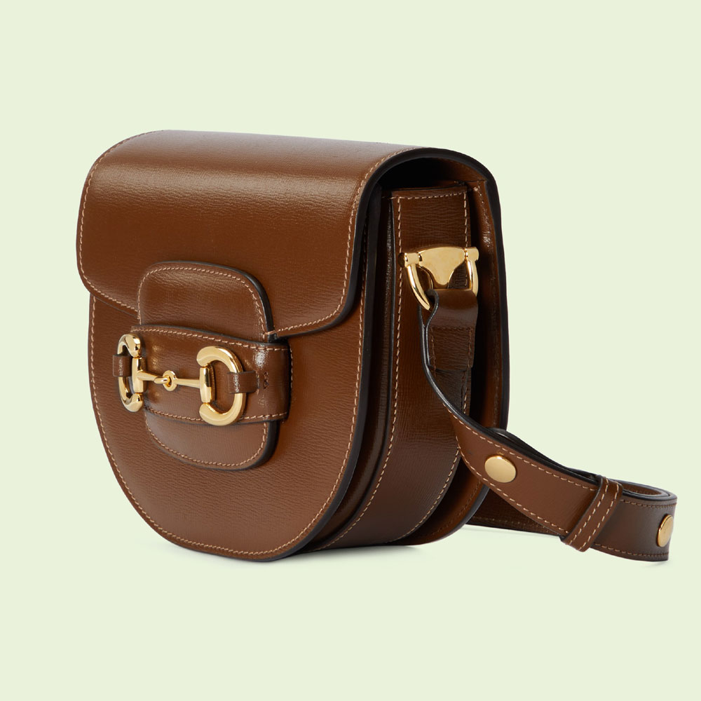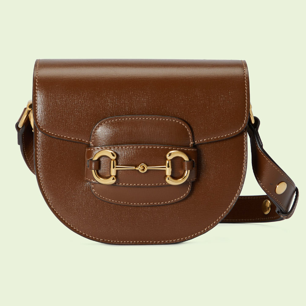 The Gucci 1955 Horsebit evolves as part of the latest collection with the addition of a mini shoulder bag variation. offering greater versatility and functionality. Presented in signature brown leather with a flap closure. an adjustable shoulder strap completes the design.