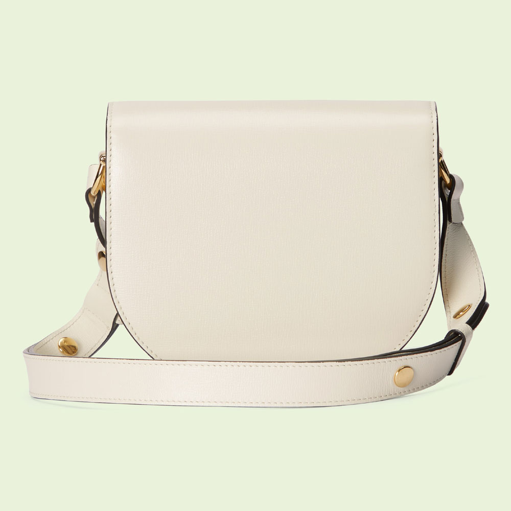 The Gucci 1955 Horsebit evolves as part of the latest collection with the addition of a mini shoulder bag variation. offering greater versatility and functionality. Presented in signature white leather with a flap closure. an adjustable shoulder strap completes the design.