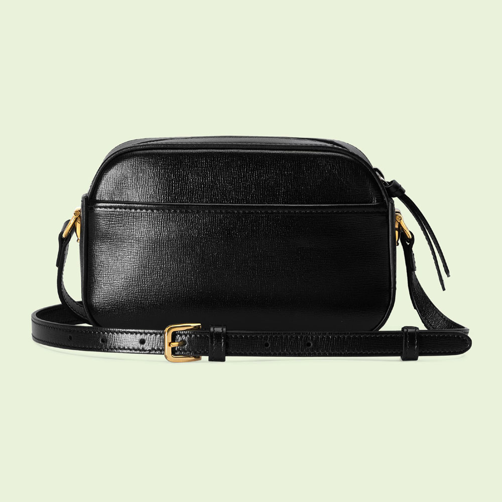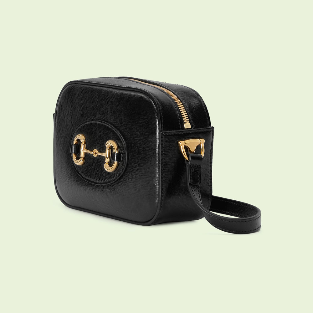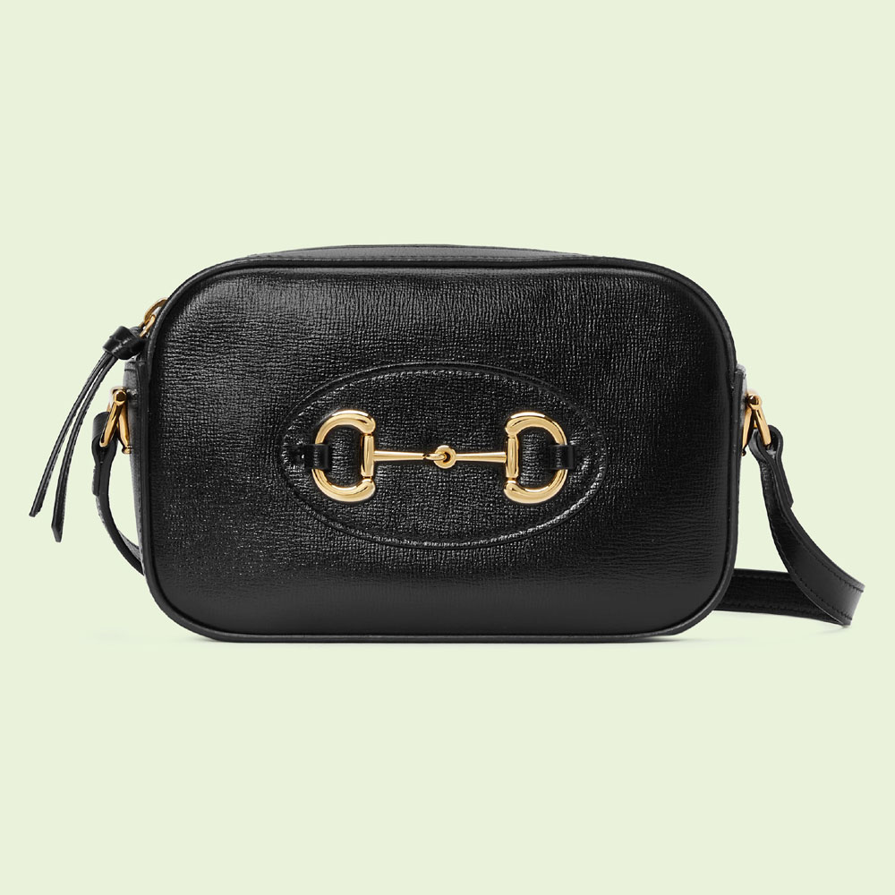 The Gucci 1955 Horsebit evolves as part of the latest collection with the addition of a small shoulder bag variation. offering greater versatility and functionality. Presented in signature black leather with a zip closure. an adjustable shoulder completes the design.