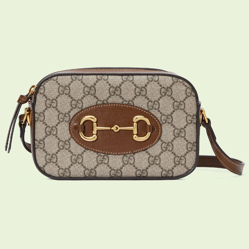 The Gucci 1955 Horsebit evolves as part of the latest collection with the addition of a small shoulder bag variation. offering greater versatility and functionality. Presented in signature beige and ebony GG Supreme canvas with a zip closure. an adjustable shoulder completes the design.