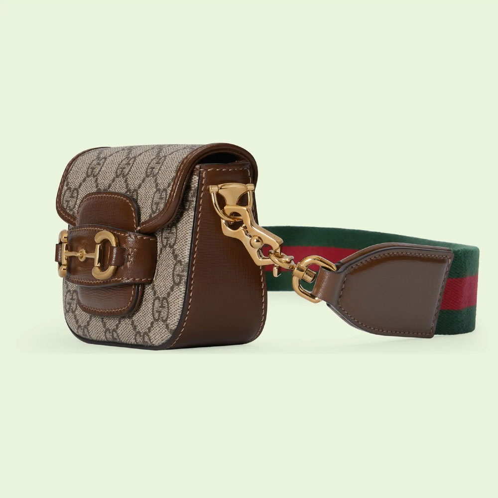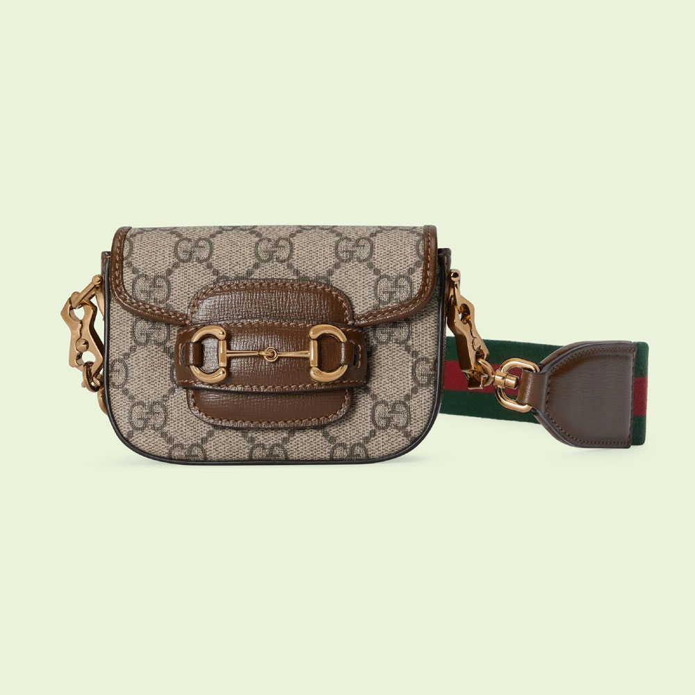 Inspired by archival designs. the world of Gucci Horsebit 1955 unifies the original details first introduced over six decades ago with a modern spirit. highlighting the Horsebit. Part of Guccis genetic code. the double ring and bar design has been established as one of the most distinctive elements among the House symbols borrowed from the equestrian world. The hardware defines this GG Supreme wallet. The style takes on a versatile feel with the addition of a Web strap in green and red.