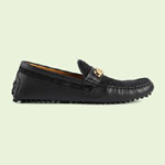 Now an emblem of the brand. the leather driver loafer is both a statement piece and a classic accessory. A shoe that appears throughout the House's collections. the style reflects the preppy narrative that animates designs. Here. the silhouette is revisited in soft black leather and GG suede. while a cut-out Interlocking G detail completes the model.
