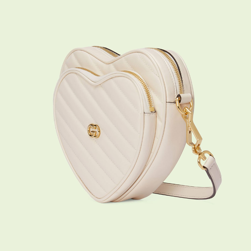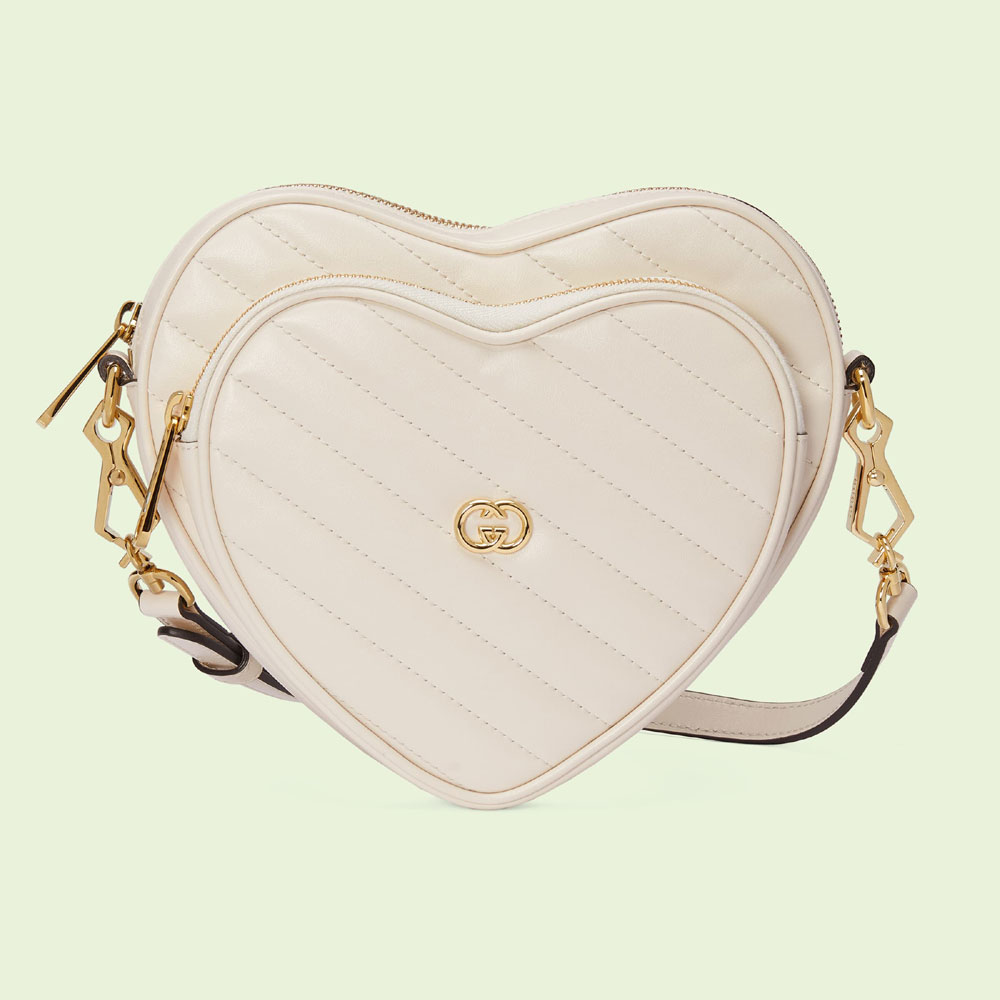 The Interlocking G motif draws inspiration from the past and present. Featuring diagonal matelasse leather. the concentric heart-shaped design gives this mini shoulder bag a whimsical twist.