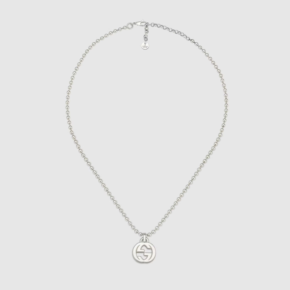 The interlocking G has remained one of the most iconic codes of the House since its introduction. The distinguishing symbol is made in 925 sterling silver and hangs from a boule chain.