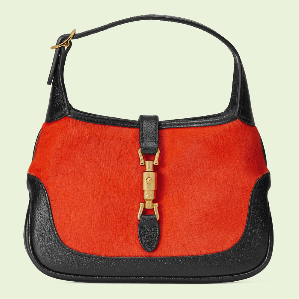 Brought back to the forefront. the Jackie 1961's recognizable shape is presented in a mix of orange calf hair and black leather. Enhanced by a second detachable strap. the archival style takes on a contemporary feel. providing new ways to wearfrom top handle. shoulder to cross body.