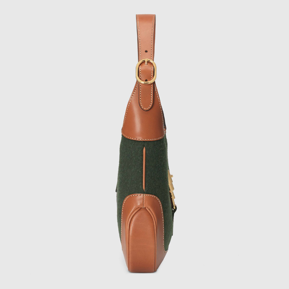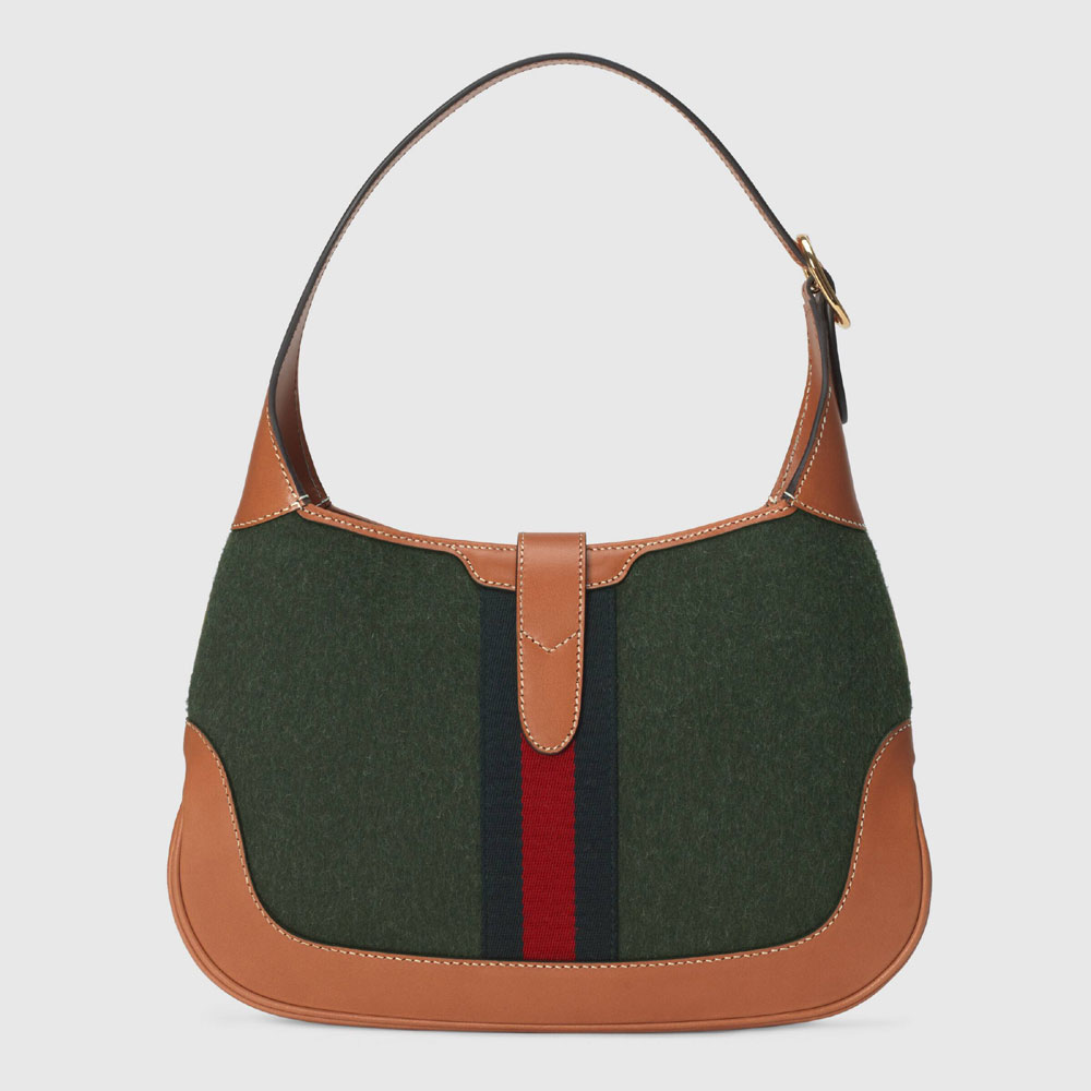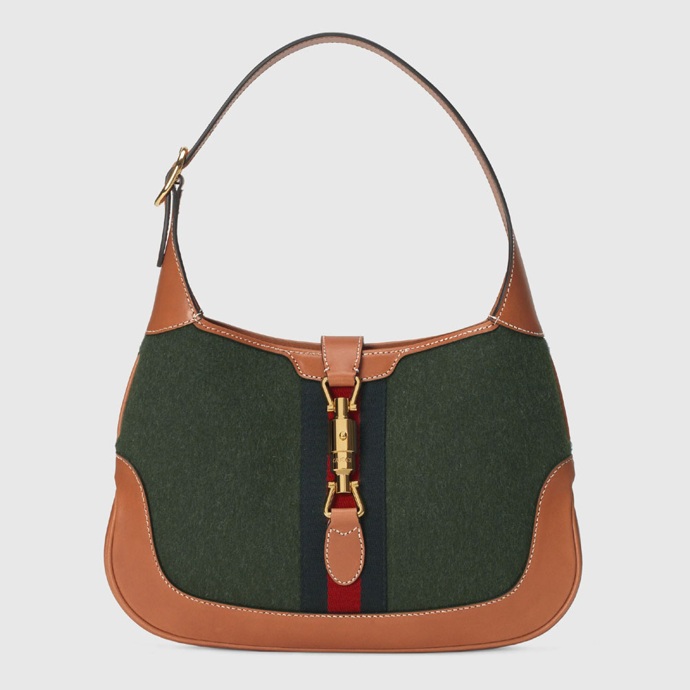 The Aria collection delves into the archives. presenting designs rich with vintage-inspired details and references to the Houses heritage. Brought back to the forefront. the Jackie 1961s recognizable shape is presented in dark green wool fabric and enhanced with an additional. detachable shoulder strap. Attached to the bag with a buckle closure. the second strap adds a contemporary feel to the iconic style. providing new ways to wear from top handle. shoulder to cross body. Size:28 x 19 x 5CM
