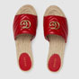 Carefully constructed in Spain. These espadrille sandals are made with hibiscus red leather and finished with the Double G. With an inherently seaside feel. The espadrille evolves from its 13th century origins into a contemporary style.
