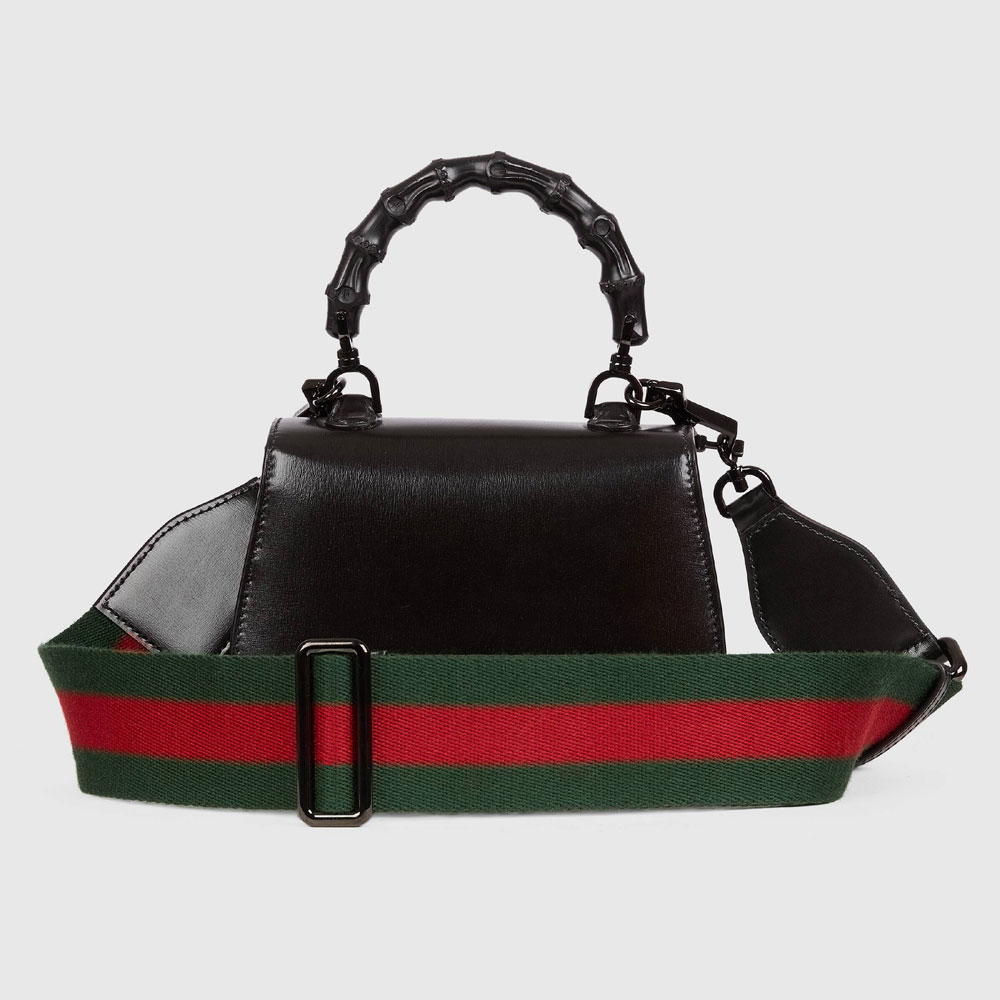 Heritage elements are reimagined with a contemporary twist throughout the Aria collection. An emblem of Guccis origins. bamboo has appeared throughout the Houses collections since the 40s. After over eight decades. the material defines this mini bag in black leather. The accessory is presented with a detachable shoulder strap. adding a versatile feel.