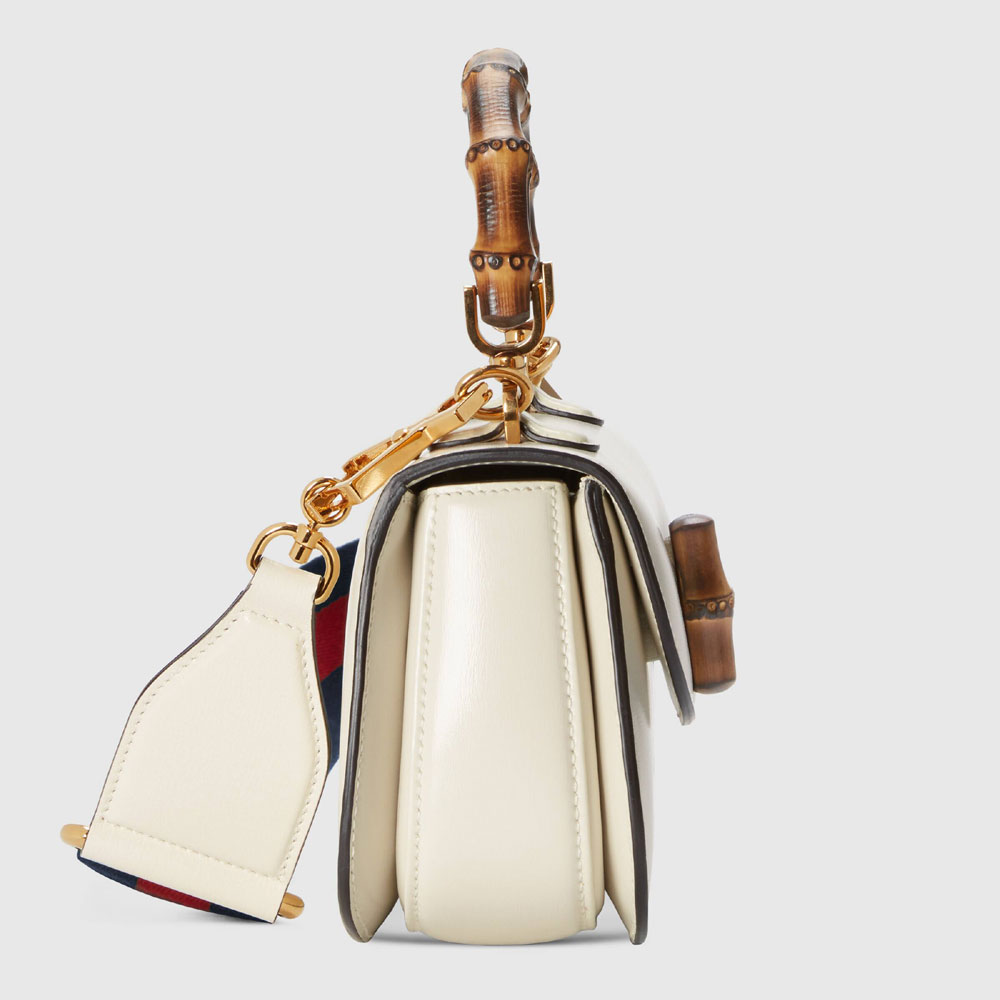 Heritage elements are reimagined with a contemporary twist throughout the Aria collection. An emblem of Guccis origins. bamboo has appeared throughout the Houses collections since the 40s. After over eight decades. the material defines this leather mini bag. The accessory is presented in white leather. enriching it with a contemporary. minimalist feel.
