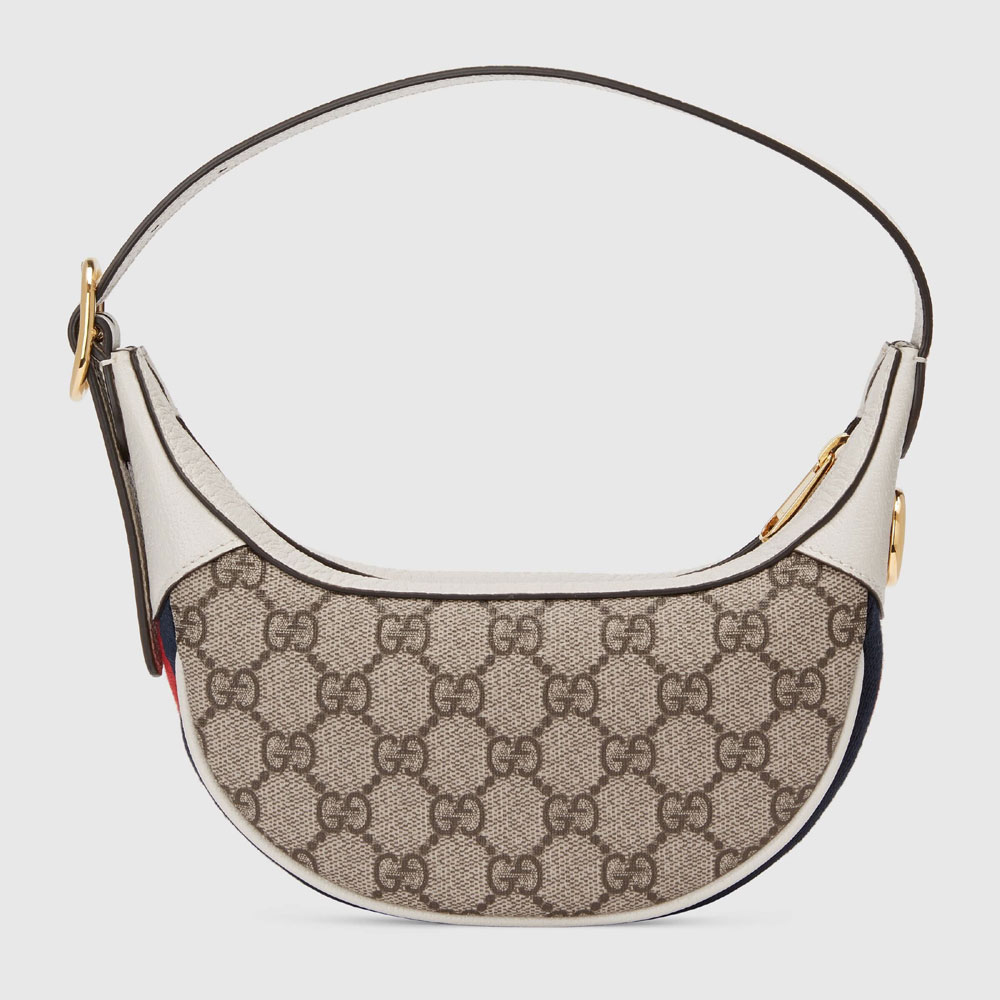 The world of Ophidia is enriched with the introduction of a crescent shaped mini bag. Crafted from the House's monogram canvas. the half-moon silhouette is infused with a retro spirit. recalling '90s designs.