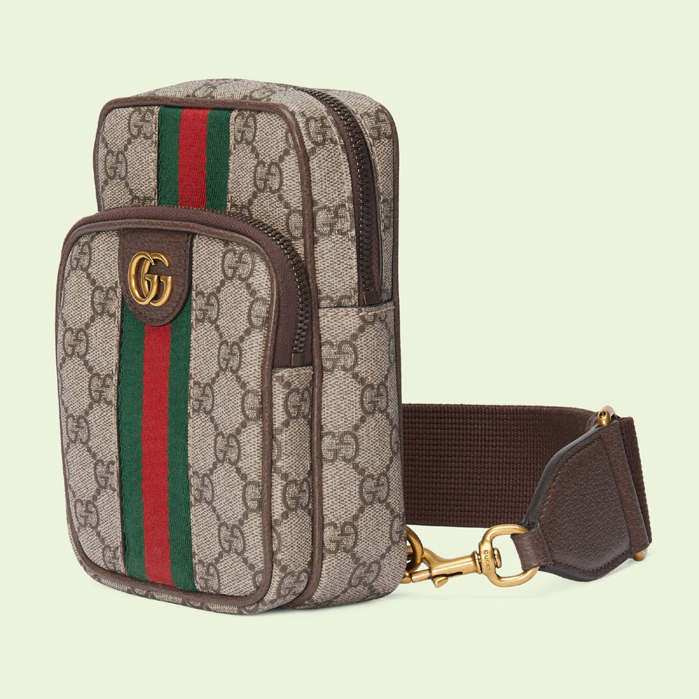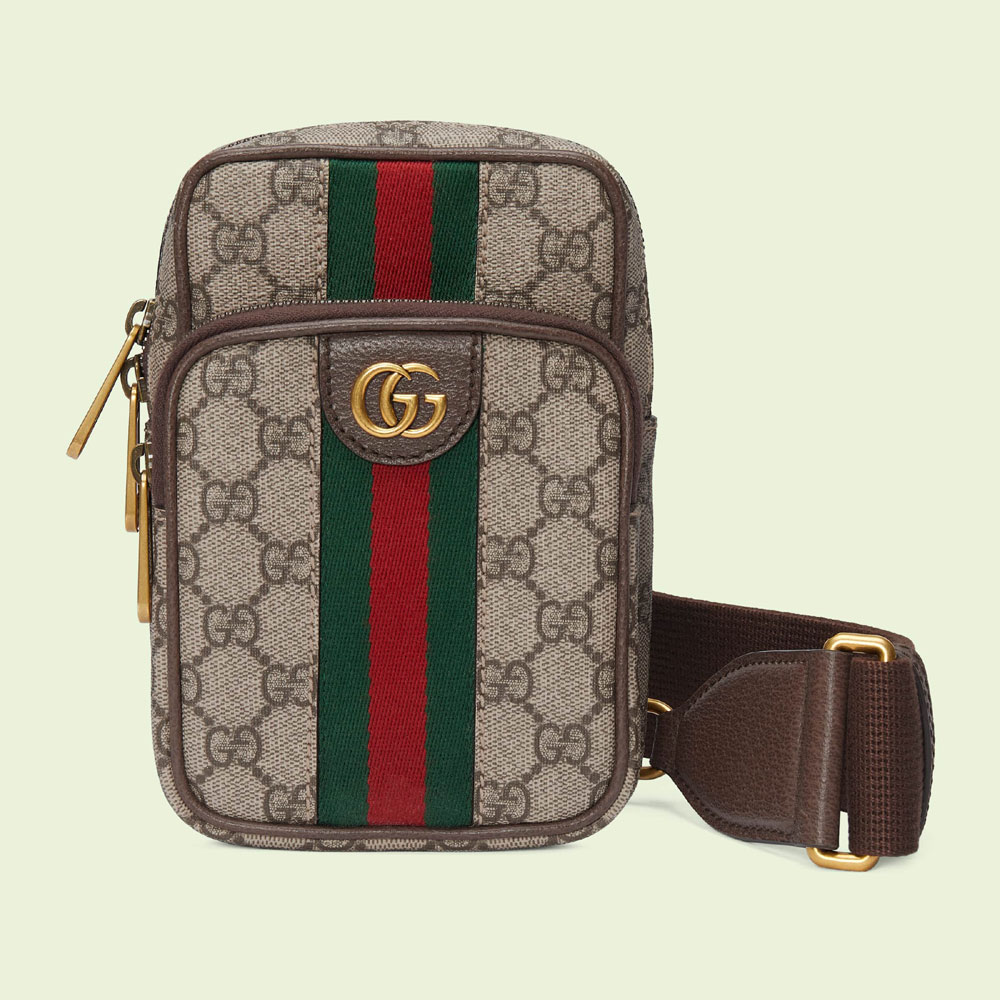 Small travel accessories remain an integral part of Gucci's leather goods selection. true to the brand's origins in luxury travel. Various emblems of the Founder's initials enrich designs with a logo feel that is both elegant and timeless. This Ophidia mini bag. presented in the classic GG Supreme canvas. includes two card slots and an exterior zip pocket.