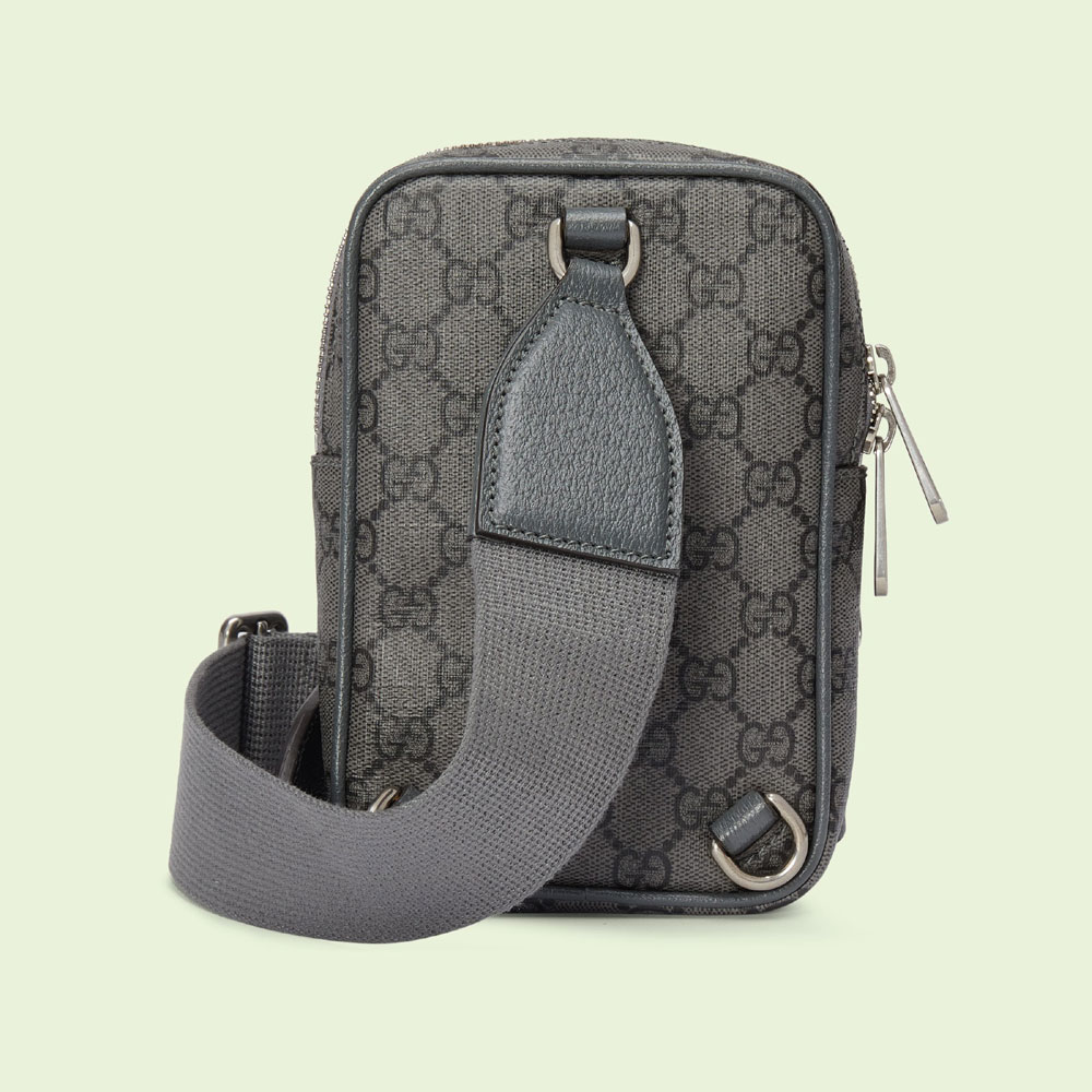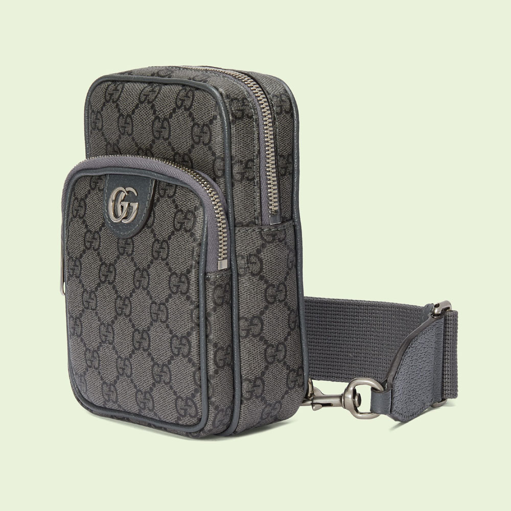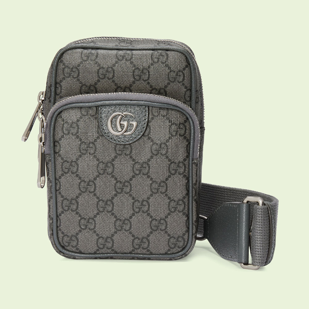 Small travel accessories remain an integral part of Gucci's leather goods selection. true to the brand's origins in luxury travel. Various emblems of the Founder's initials enrich designs with a logo feel that is both elegant and timeless. This Ophidia mini bag. presented in a modern grey and black GG Supreme canvas. includes two card slots and an exterior zip pocket.
