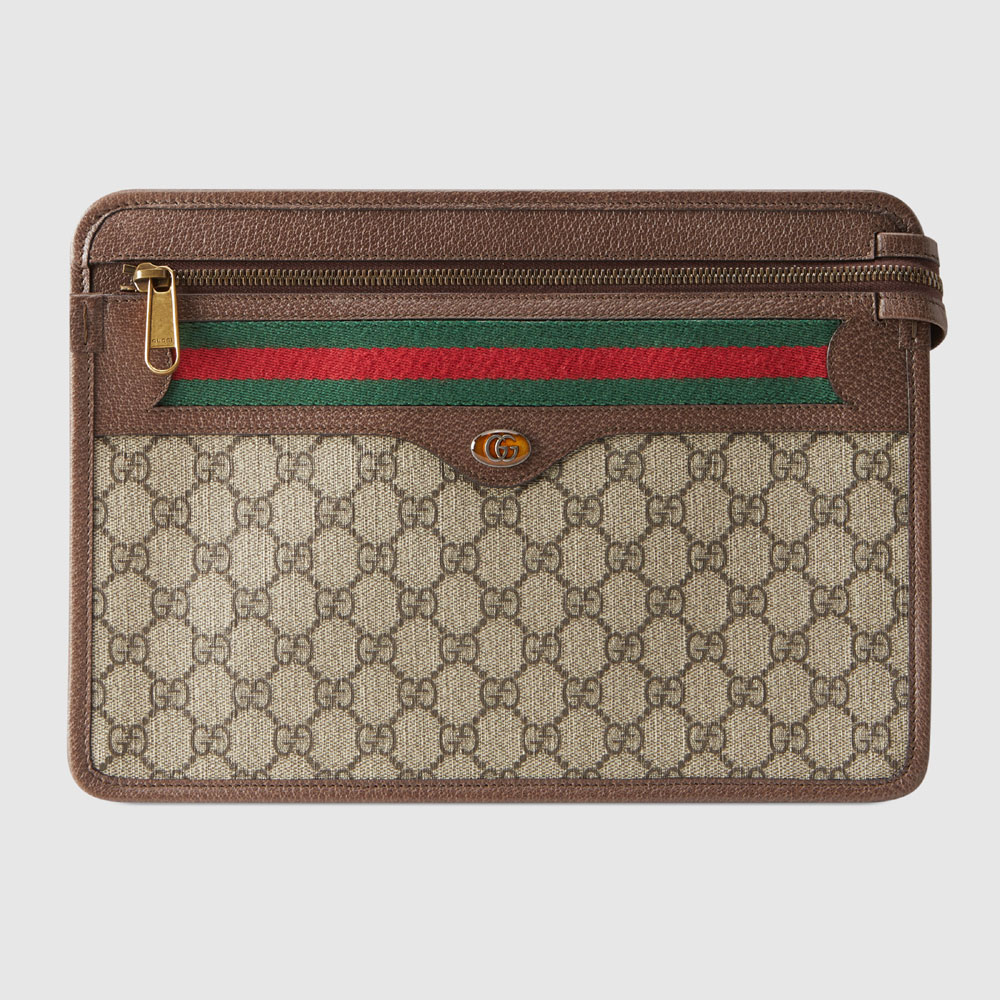 The zipped pouch is presented in GG Supreme canvas trimmed with the green and red Web stripe and an enameled detail with metal Double G a classic combination of the House's most recognizable elements that defines the line. The world of Ophidia continues to evolve. Incorporating new shapes and silhouettes for Cruise 2020.