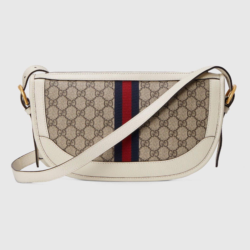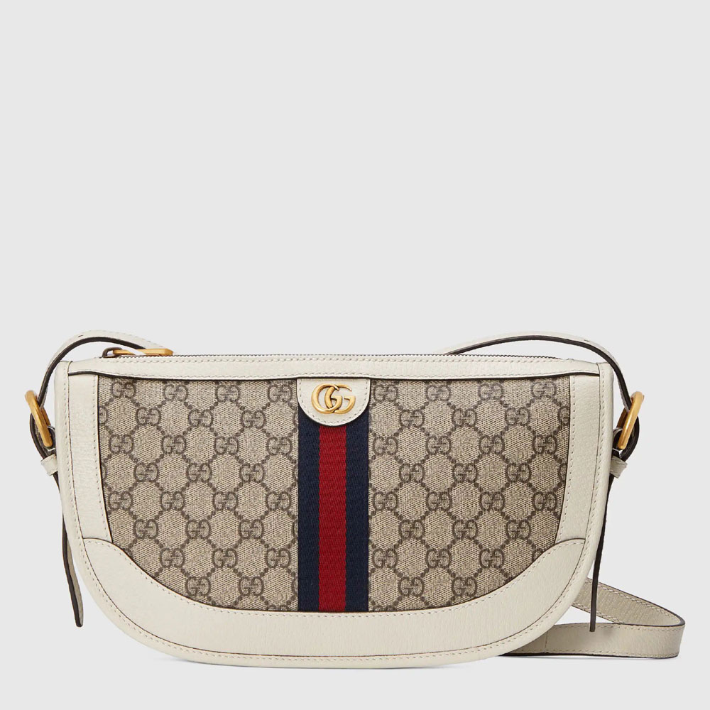 Within Gucci Aria the world of Ophidia evolves with new iterations. combining vintage inspired details with emblematic House codes. The GG logo is an evolution of the original Gucci rhombi design and continues to be an established symbol of the House. This large shoulder bag combines the signature motif with a white leather trim and Web stripepaying homage to Gucci's roots.
